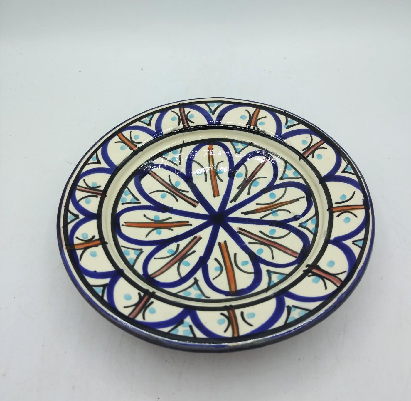 Ogni pezzo è meticolosamente decorato a mano, riflettendo la ricca eredità culturale e l’abilità artistica della regione. I motivi intricati e i colori vivaci donano a questi piattini un fascino unico, rendendoli ideali non solo per l’uso quotidiano, per dolci, pane o antipastini, ma anche come eleganti elementi ornamentali appesi a parete, aggiungendo un tocco di raffinata bellezza marocchina a qualsiasi ambiente.