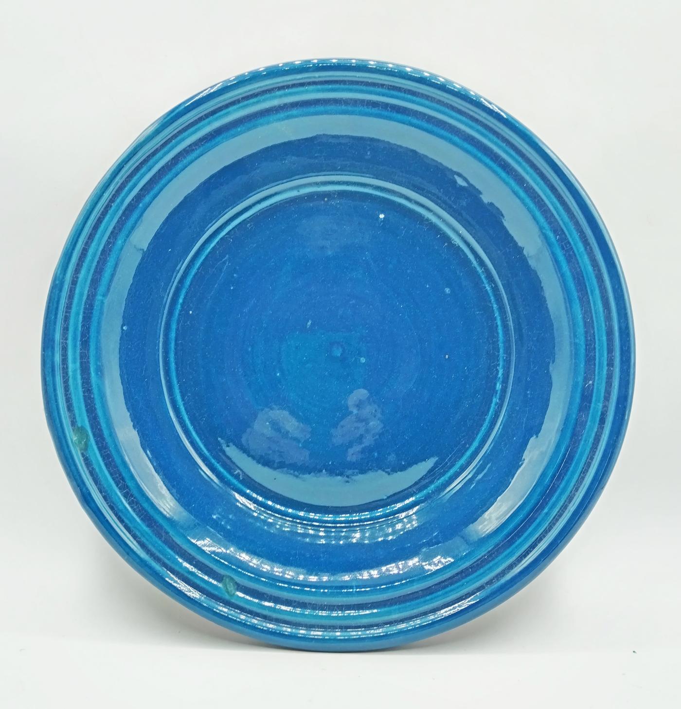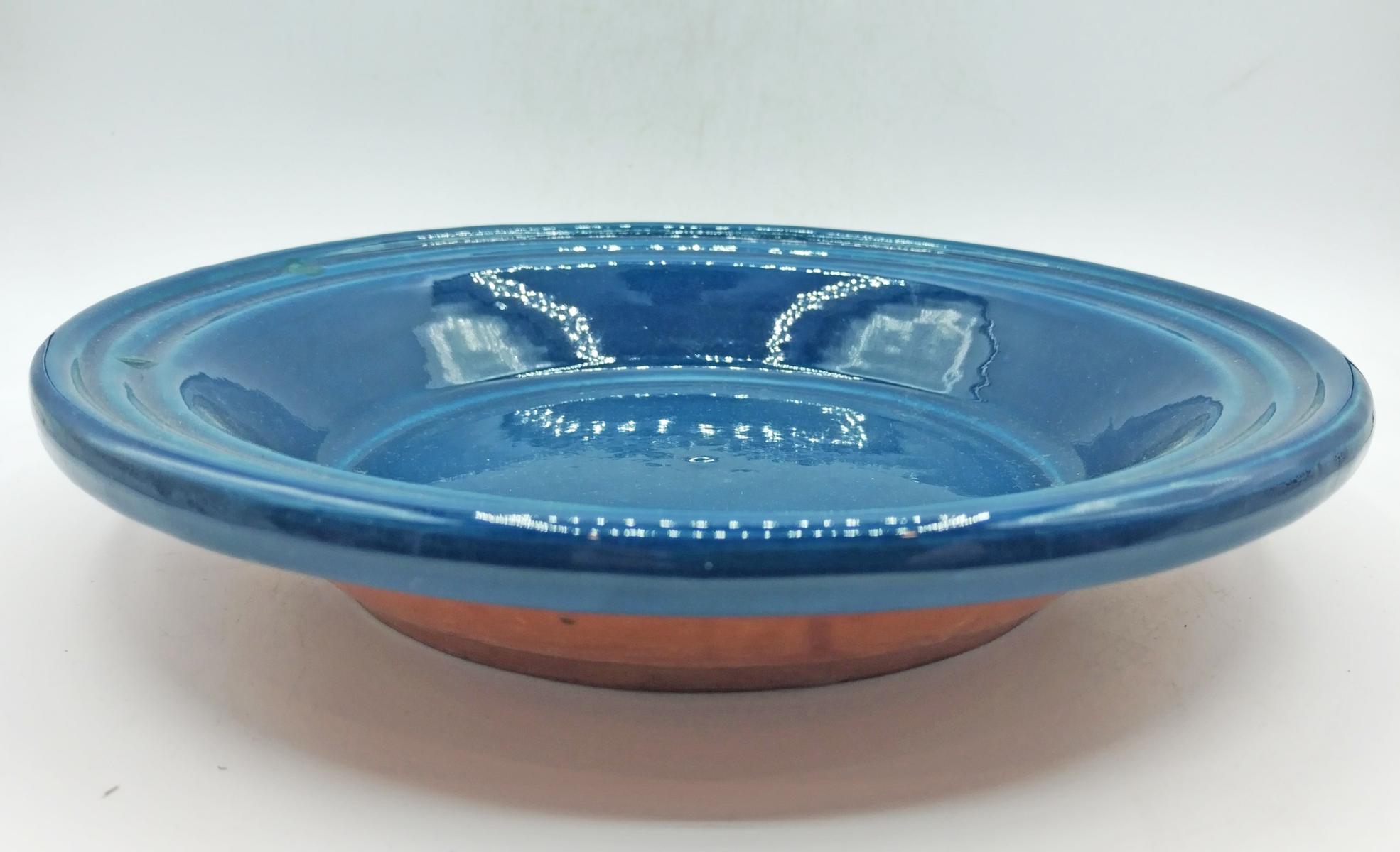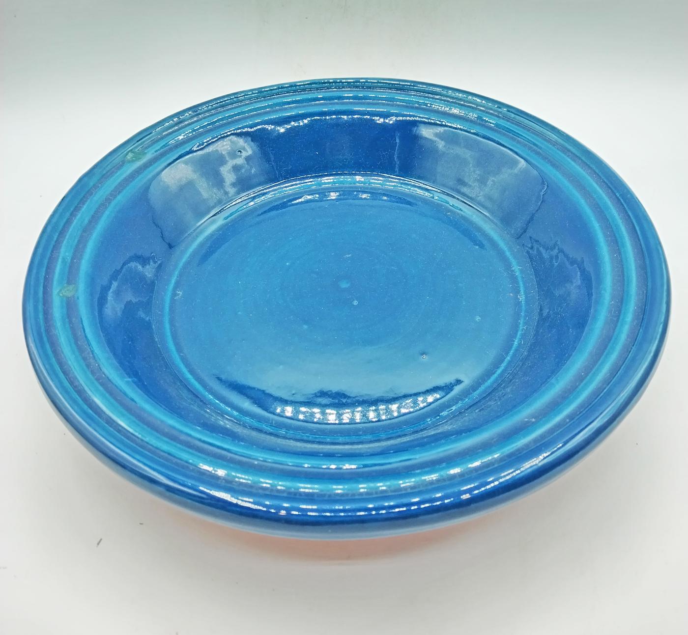 Piatto tinta unita realizzato artigianalmente in Marocco in terracotta smaltata color blu petrolio