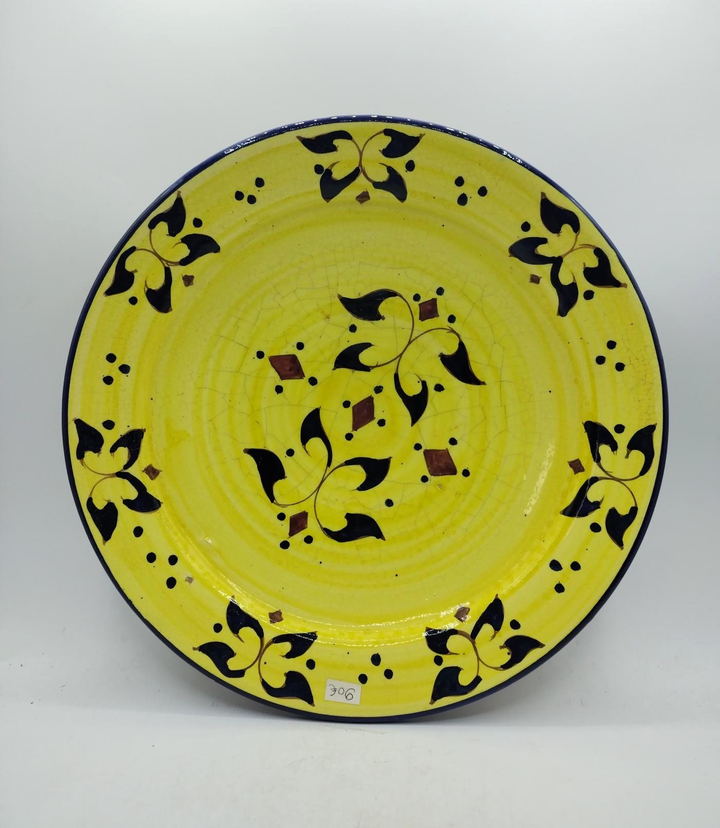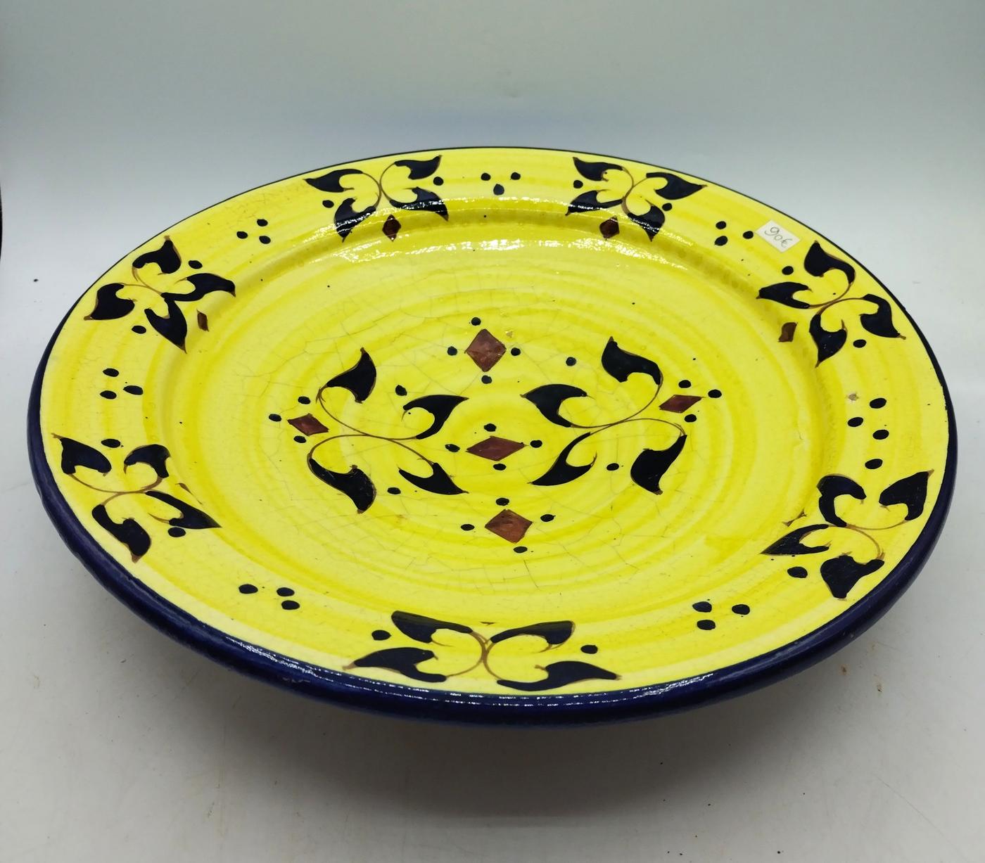 Piatto marocchino in terracotta smaltata, interamente decorato con motivi floreali