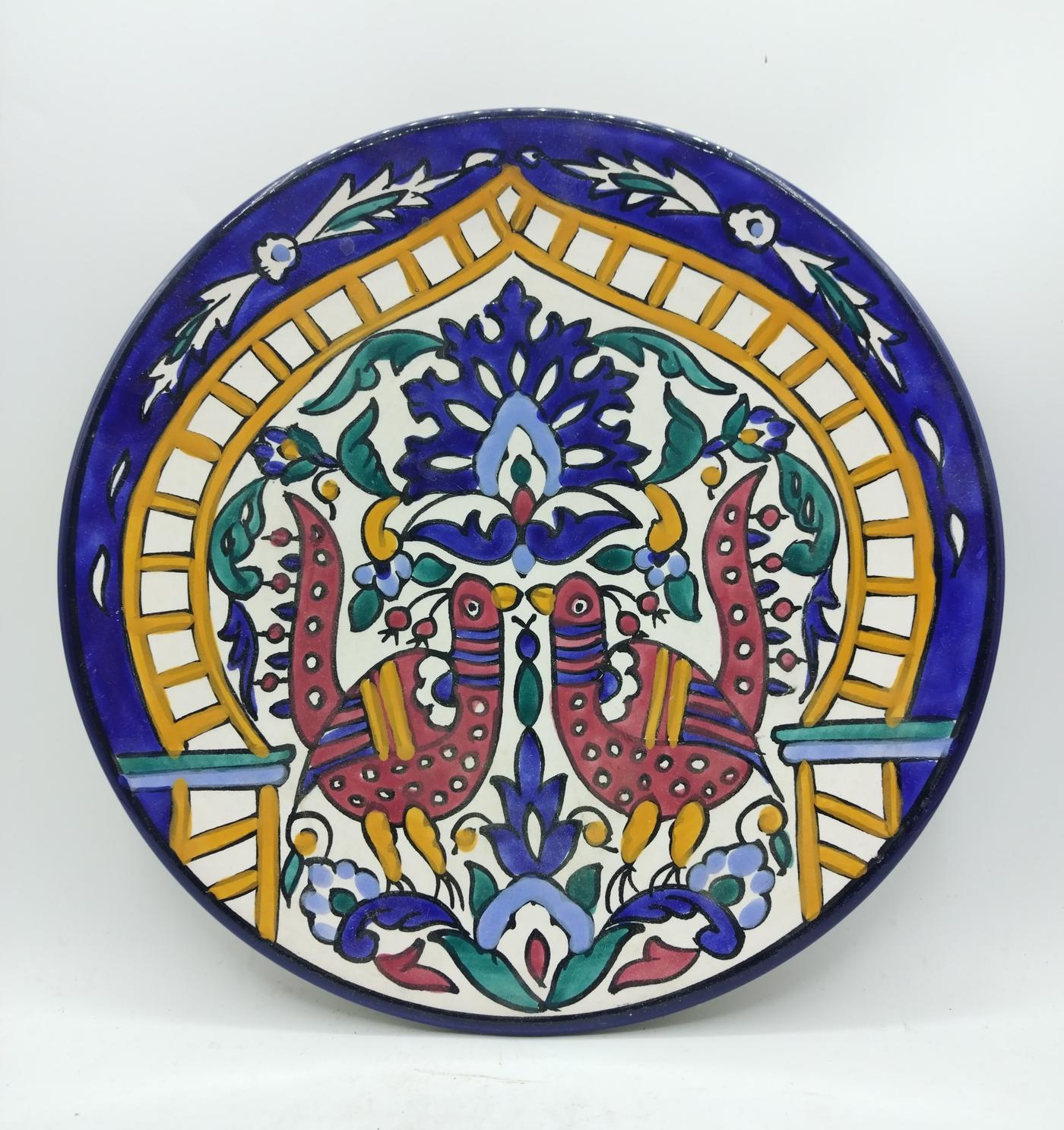 Piatto Tunisino in terracotta smaltata, interamente decorato