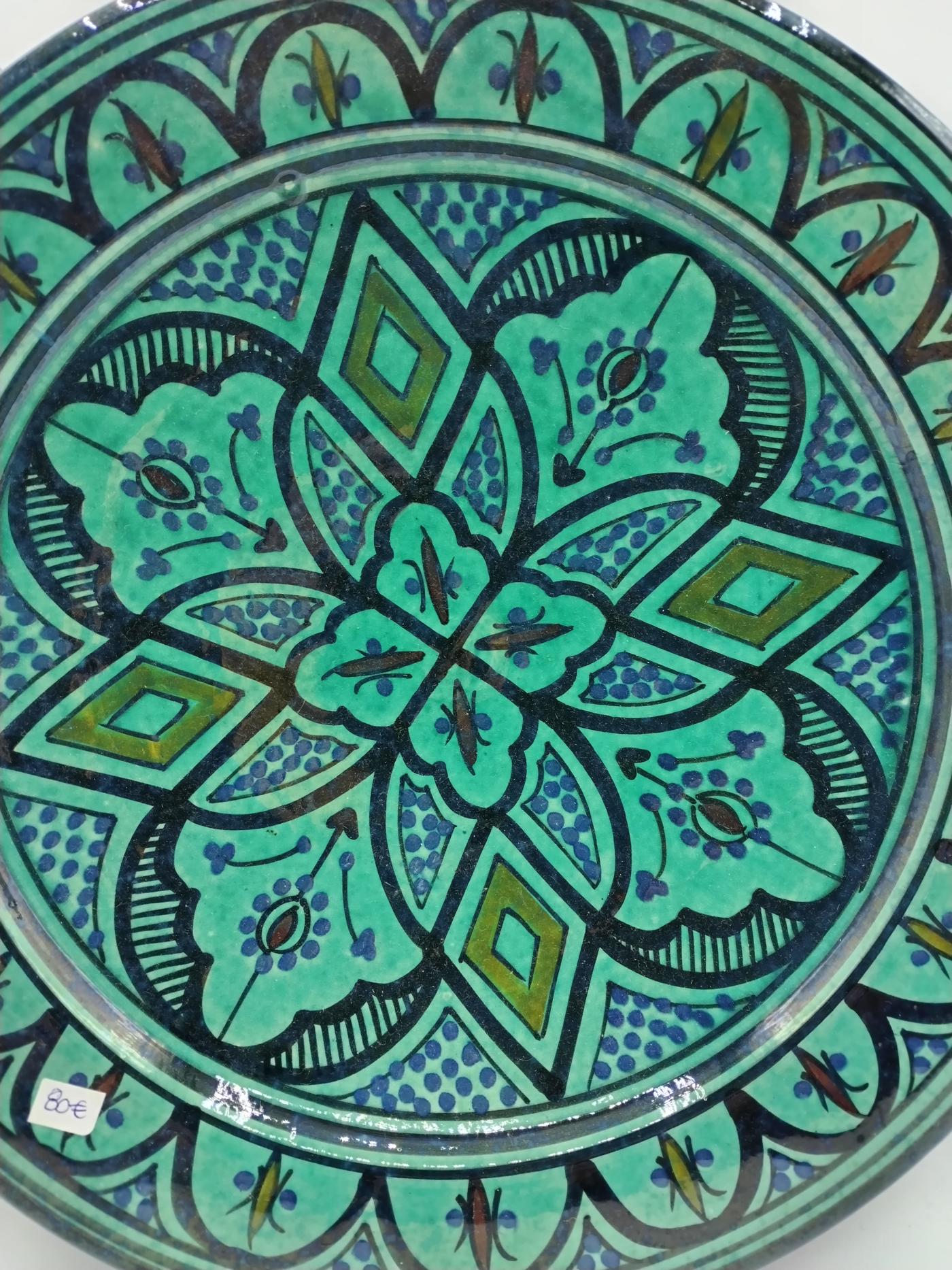 I motivi intricati e i colori vivaci donano a questo piatto un fascino unico, rendendolo ideale non solo per l’uso quotidiano, ma anche come elegante elemento ornamentale per aggiungere un tocco di raffinata bellezza marocchina a qualsiasi ambiente.