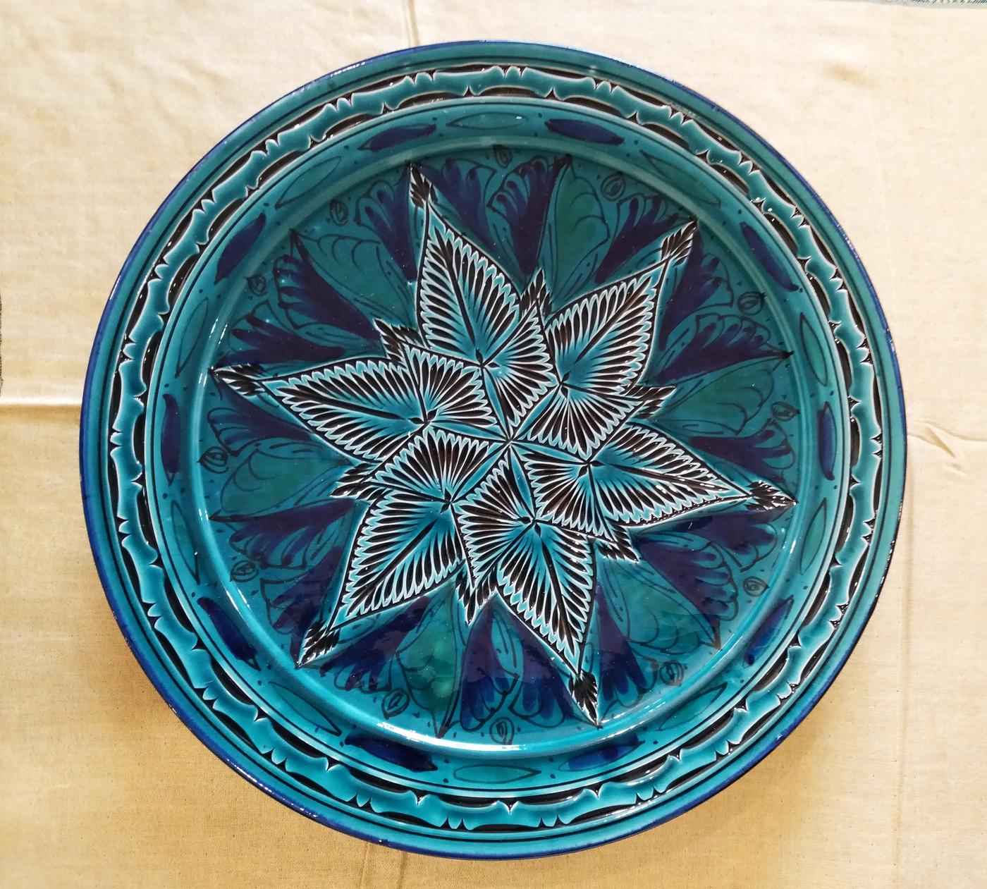 Grazie alla smaltatura, il piatto Zayd è adatto per servire cibi, ma oltre alla sua funzionalità pratica, è un oggetto decorativo perfetto: può essere posizionato su un tavolo, su un mobile o appeso, arricchendo l’arredamento con il suo design raffinato e il suo colore brillante.
