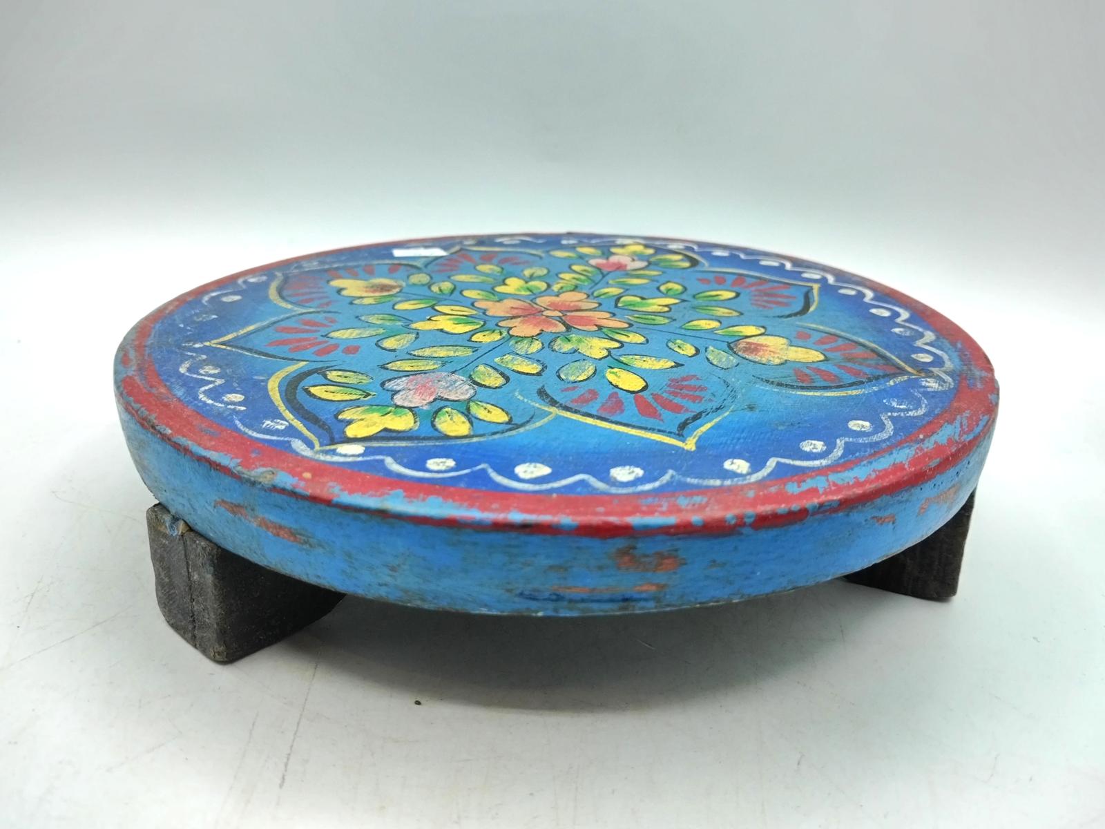 Poggia pentole in legno dipinto, realizzato in India
