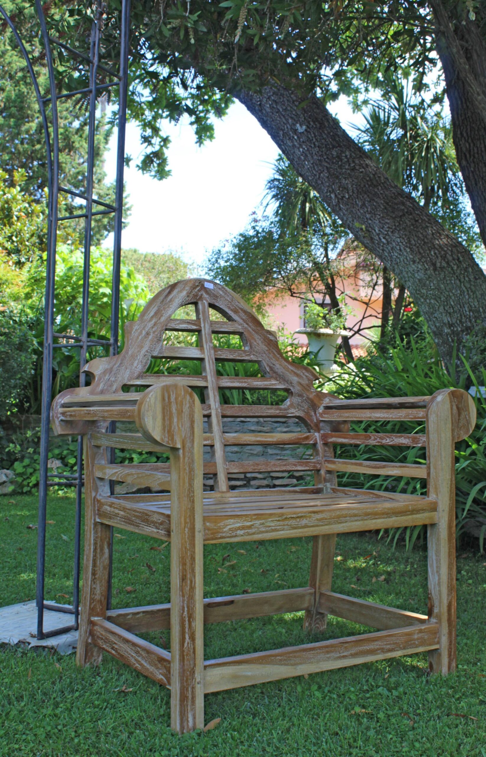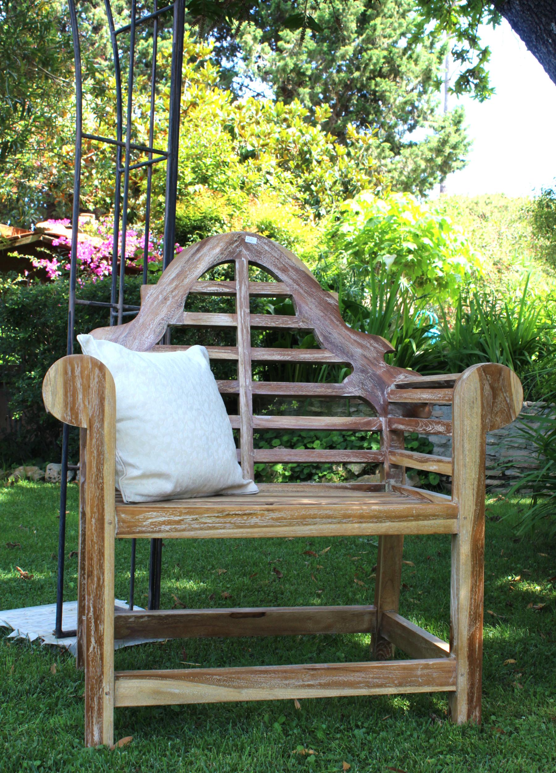 Lo schienale è in stile orientale a doghe, i braccioli sono tondeggianti e presenta un’ampia seduta comoda e confortevole strutturata a doghe disposte in modo uniforme, ancora meglio se abbinata con dei cuscini per offrire un tocco estetico ed avere un maggior confort.