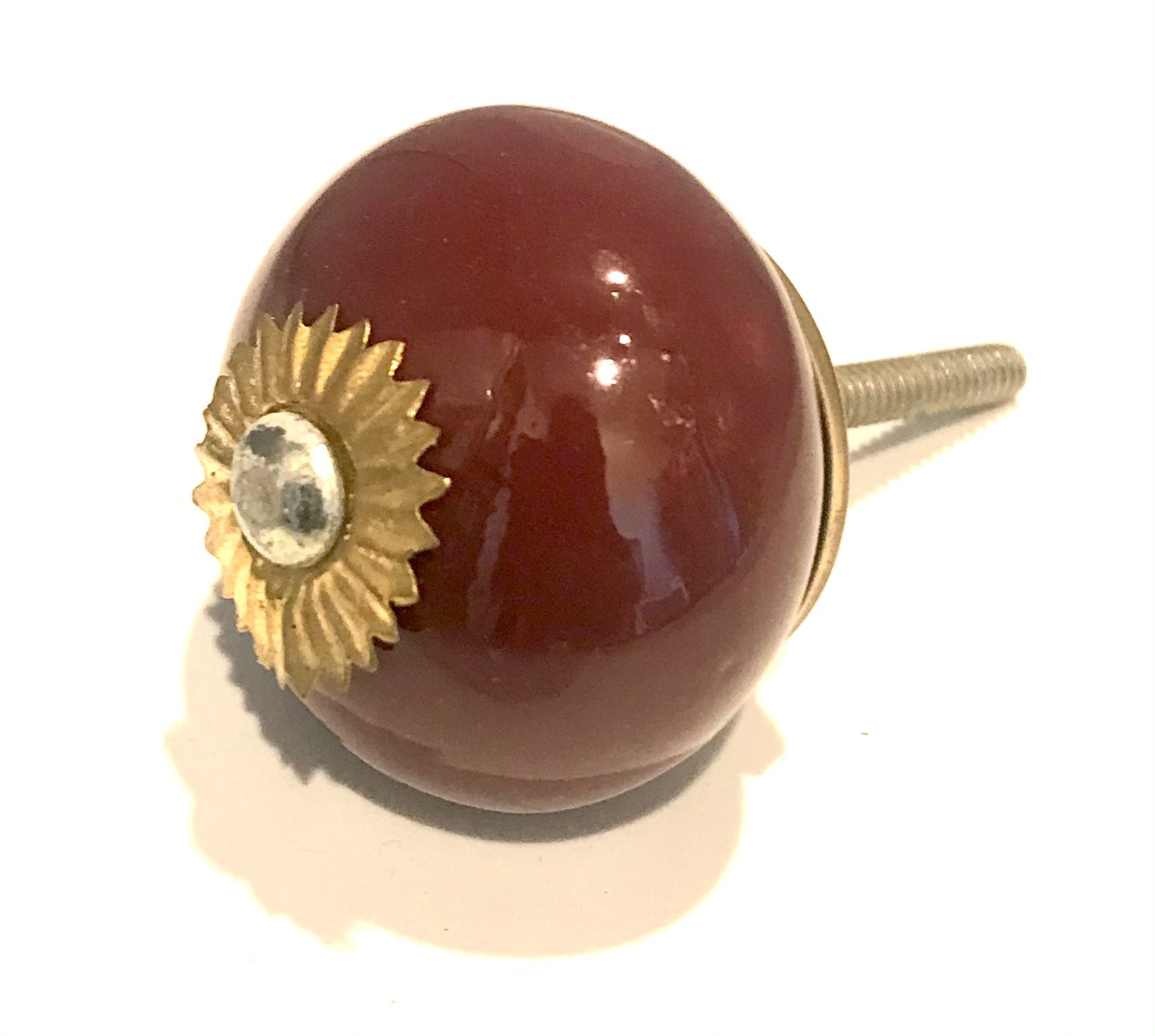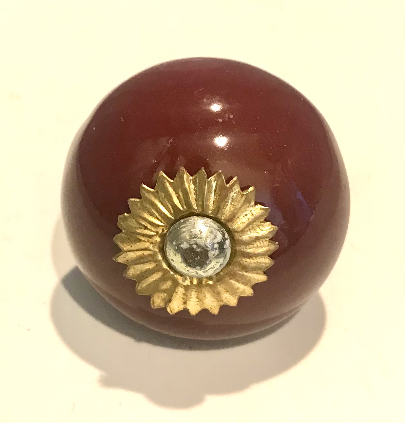 Pomelli indiani in ceramica e metallo tondi color bordeaux con attacchi in metallo dorato