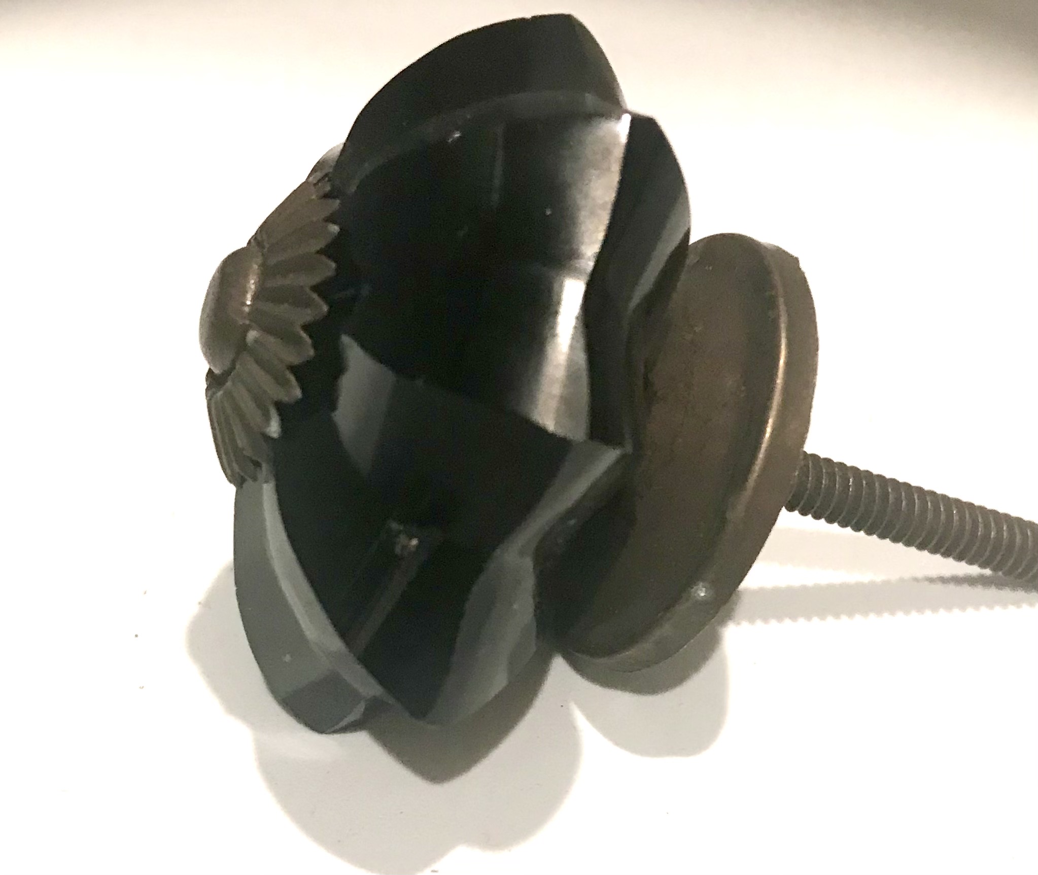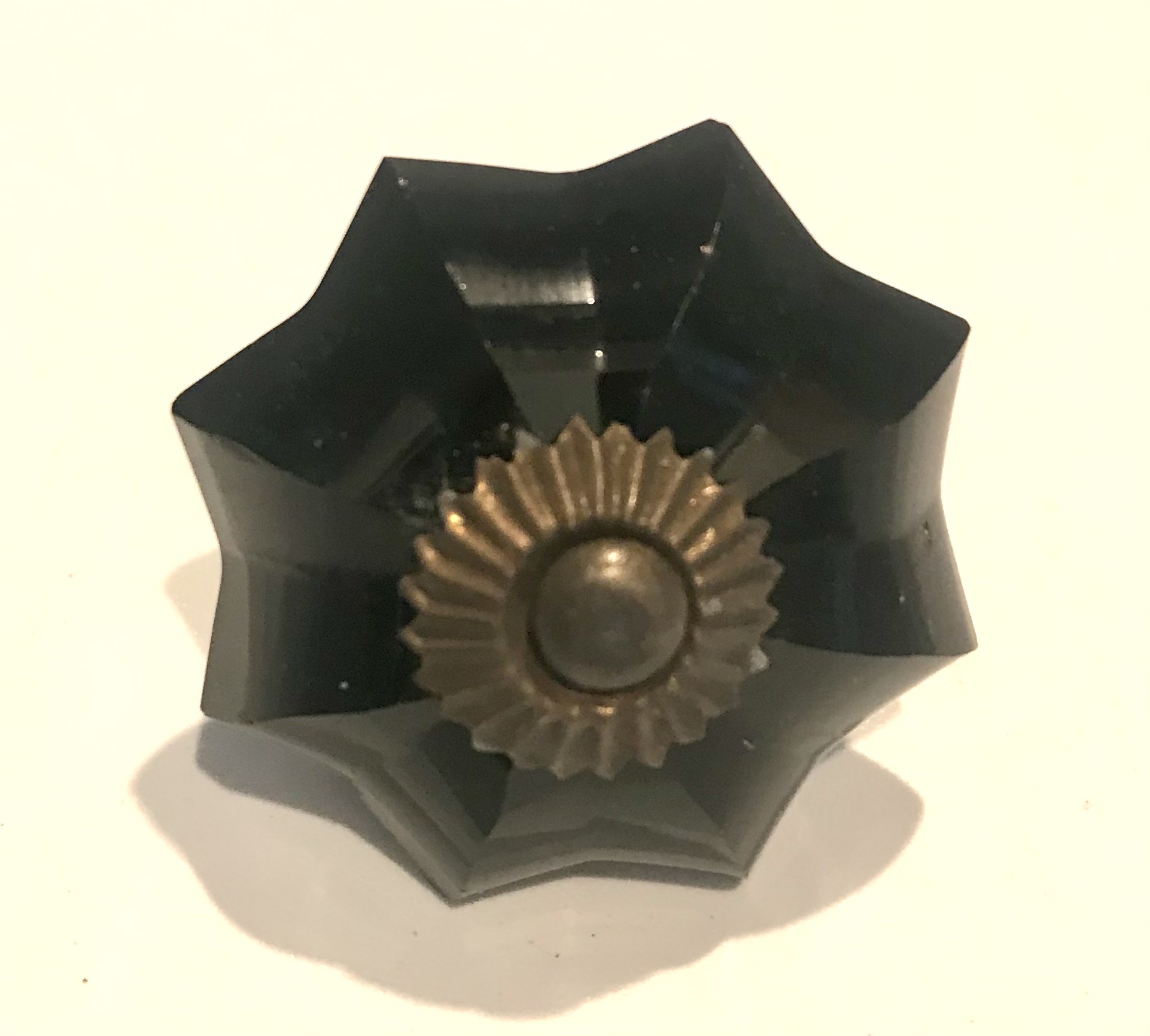 Pomelli indiani in vetro e metallo forma di fiore color nero con attacchi in metallo