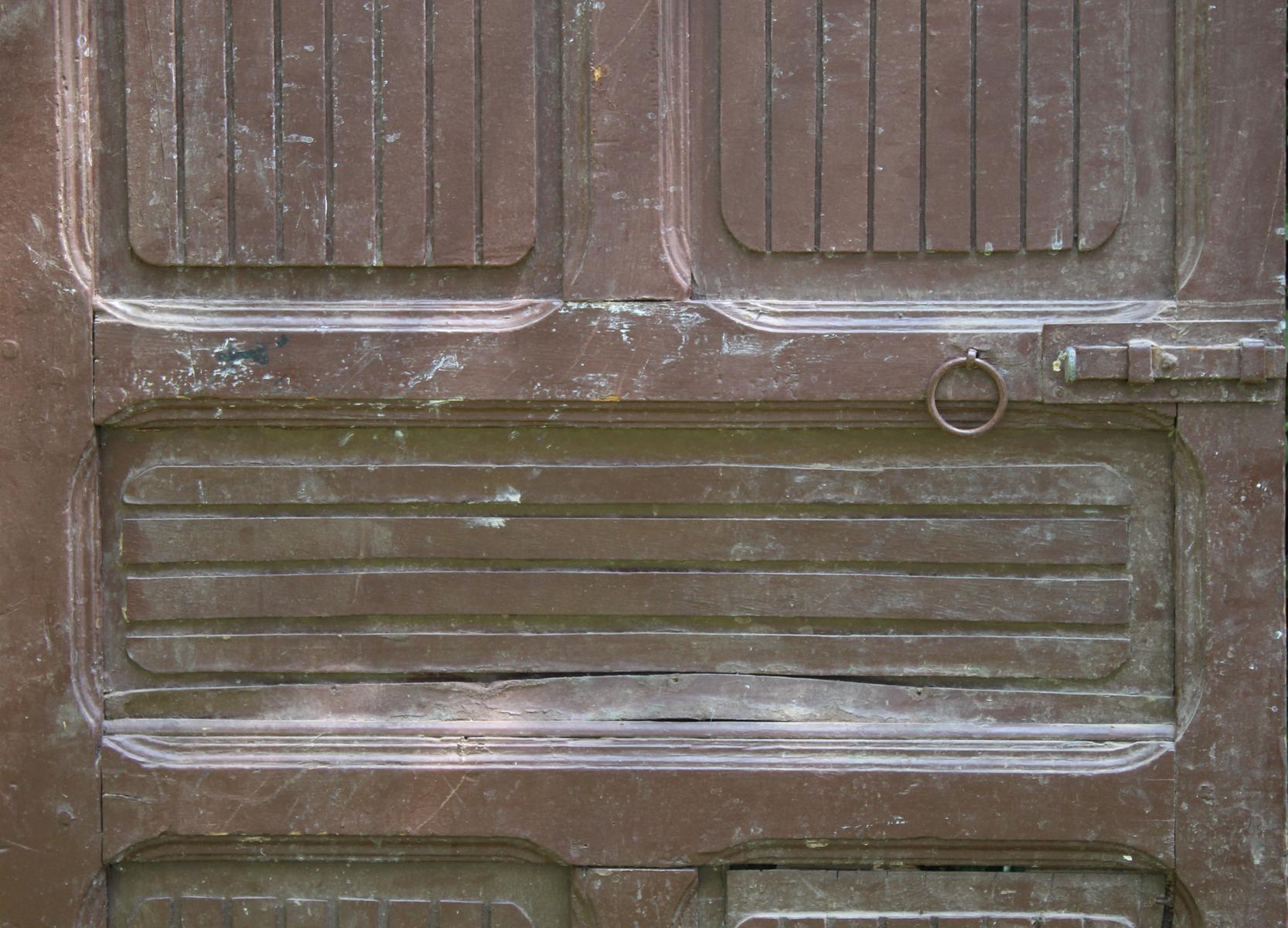 Porta marocchina d’antiquariato in legno dipinto marrone, con fregio traforato nella parte superiore