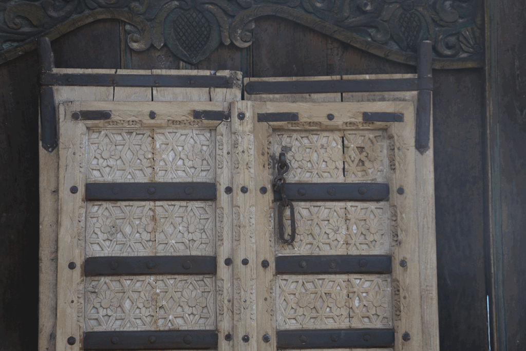 La porta Kamya  è stata realizzata da abili artigiani indiani in legno decolorato attraverso la tecnica “bleach”, da cui si ottiene un colore chiaro e naturale che mette in risalto i meravigliosi intagli geometrici e floreali.