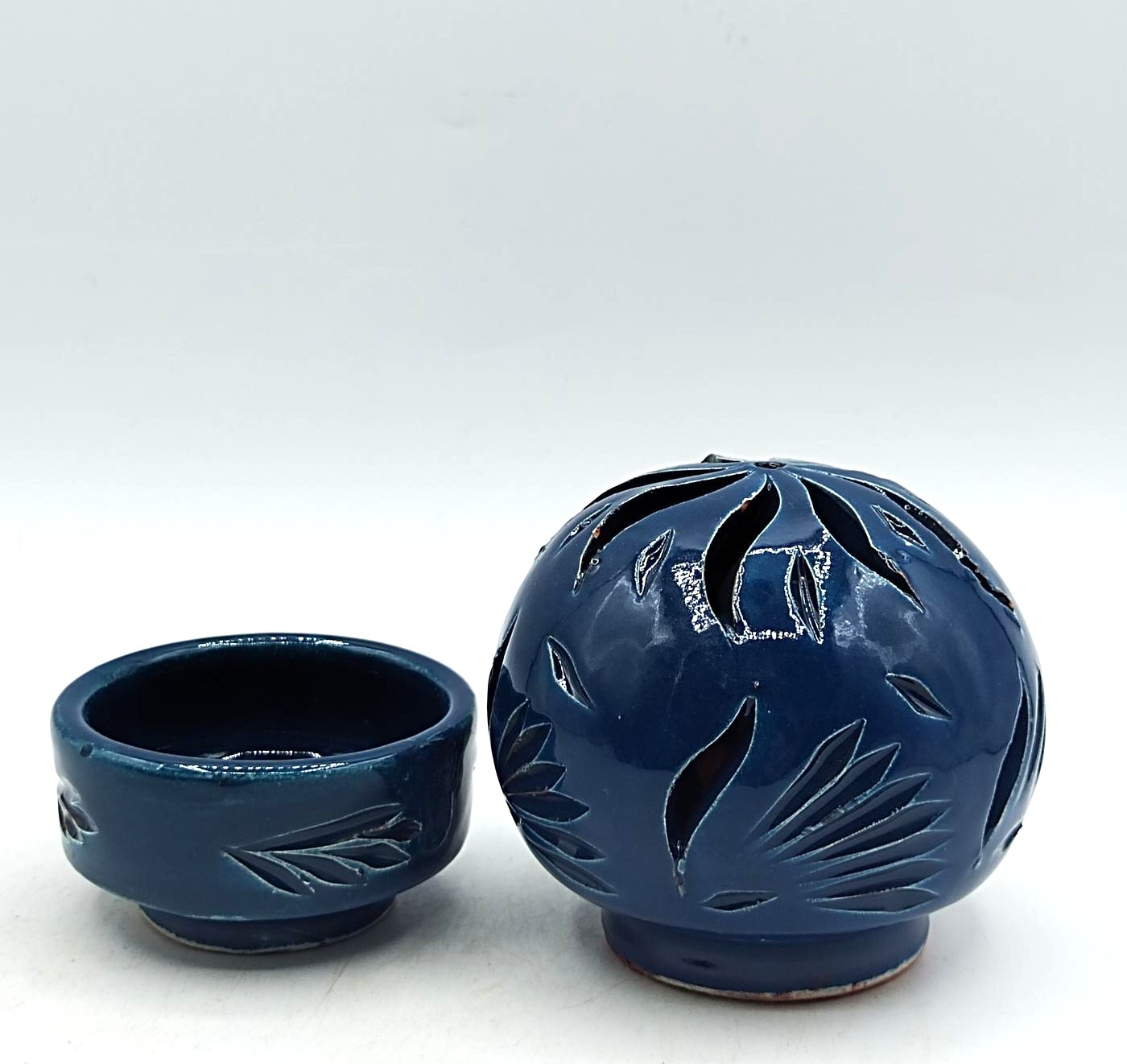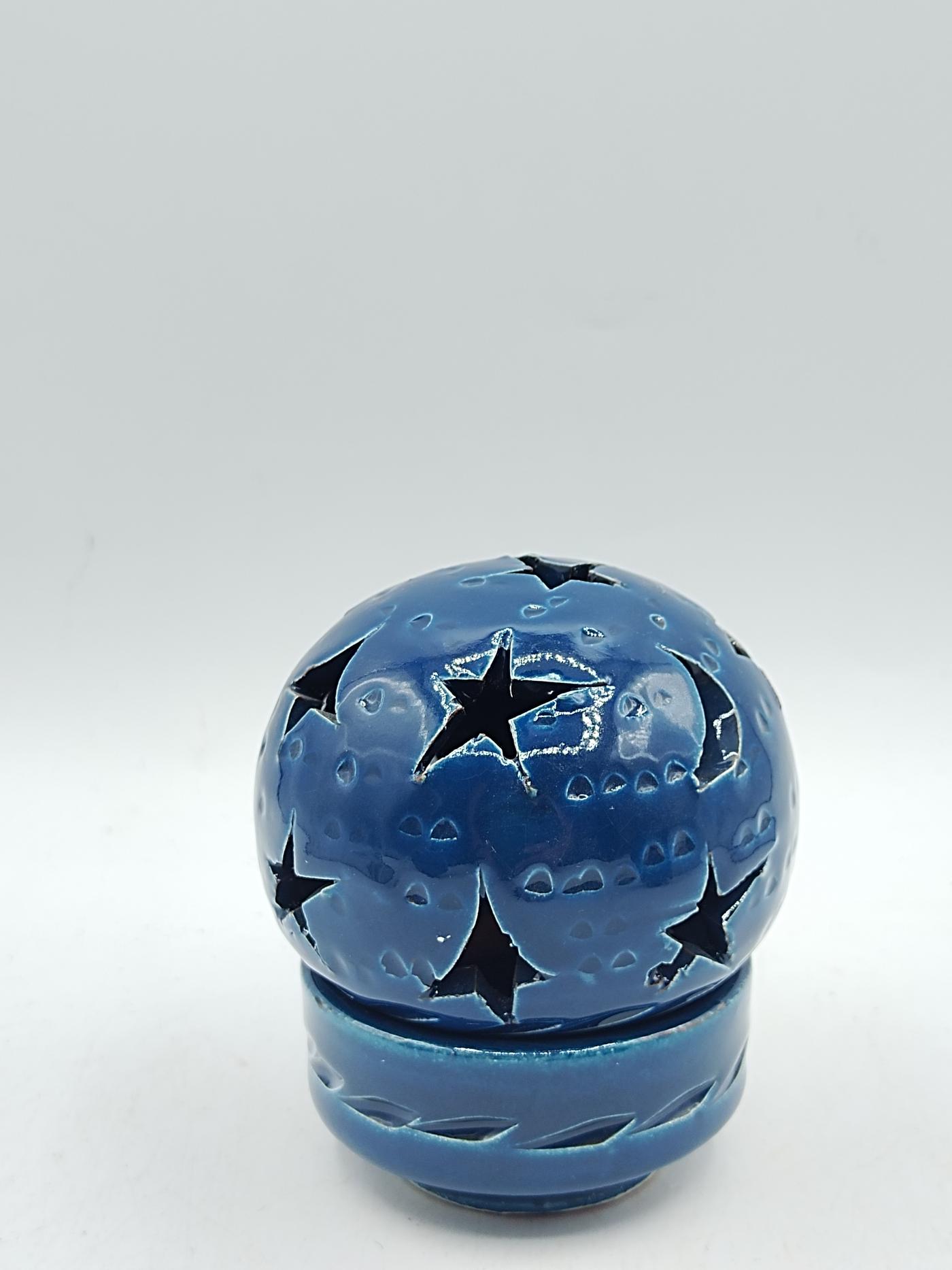 Portacandela realizzato artigianalmente in Marocco in terracotta smaltata traforata con motivi floreali e geometrici.Essendo un prodotto artigianale le dimensioni posso variare leggermente e può presentare piccole imperfezioni