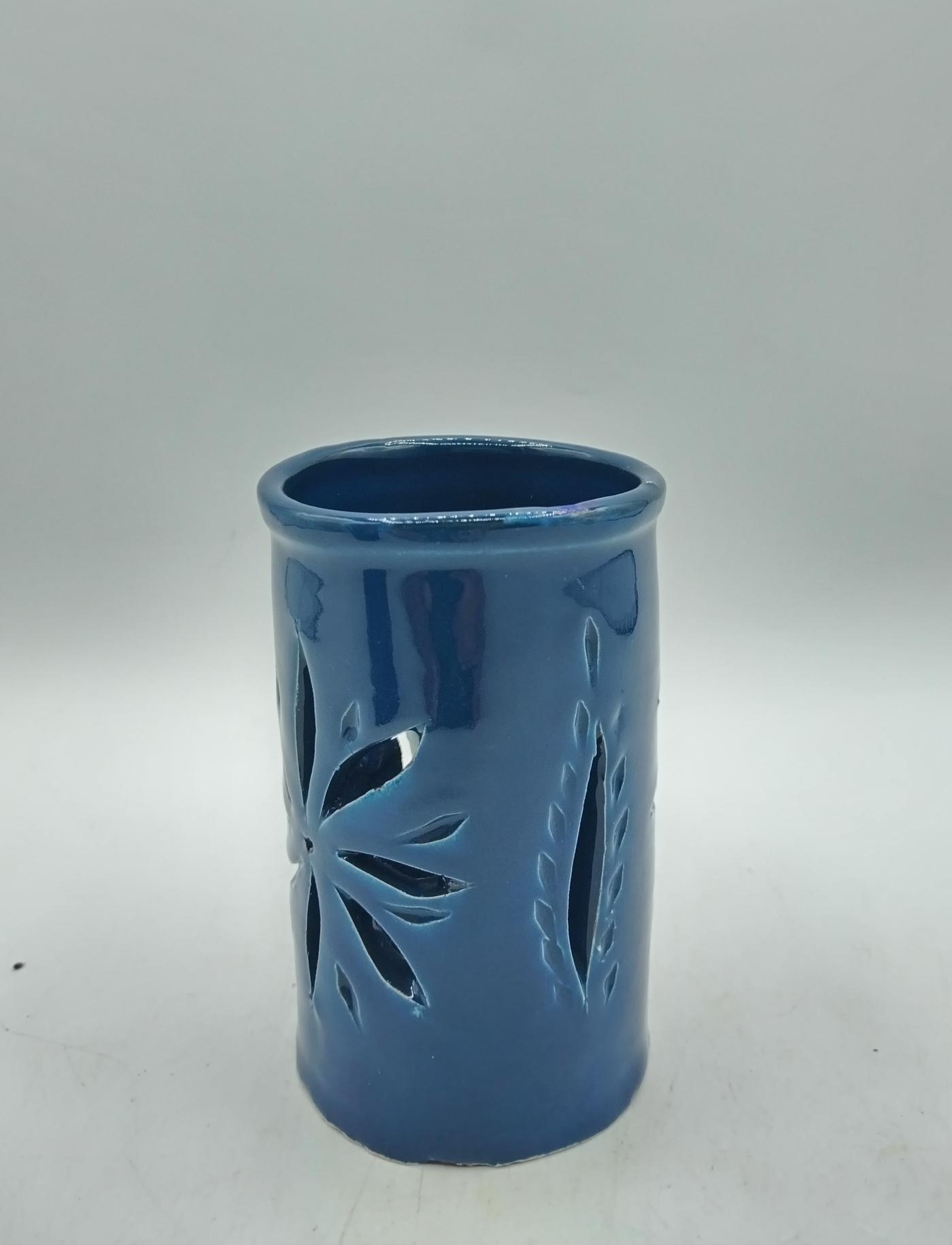 Questo bellissimo oggetto d’artigianato marocchino può anche essere usato come porta spazzolini in bagno o porta penne su una scrivania.