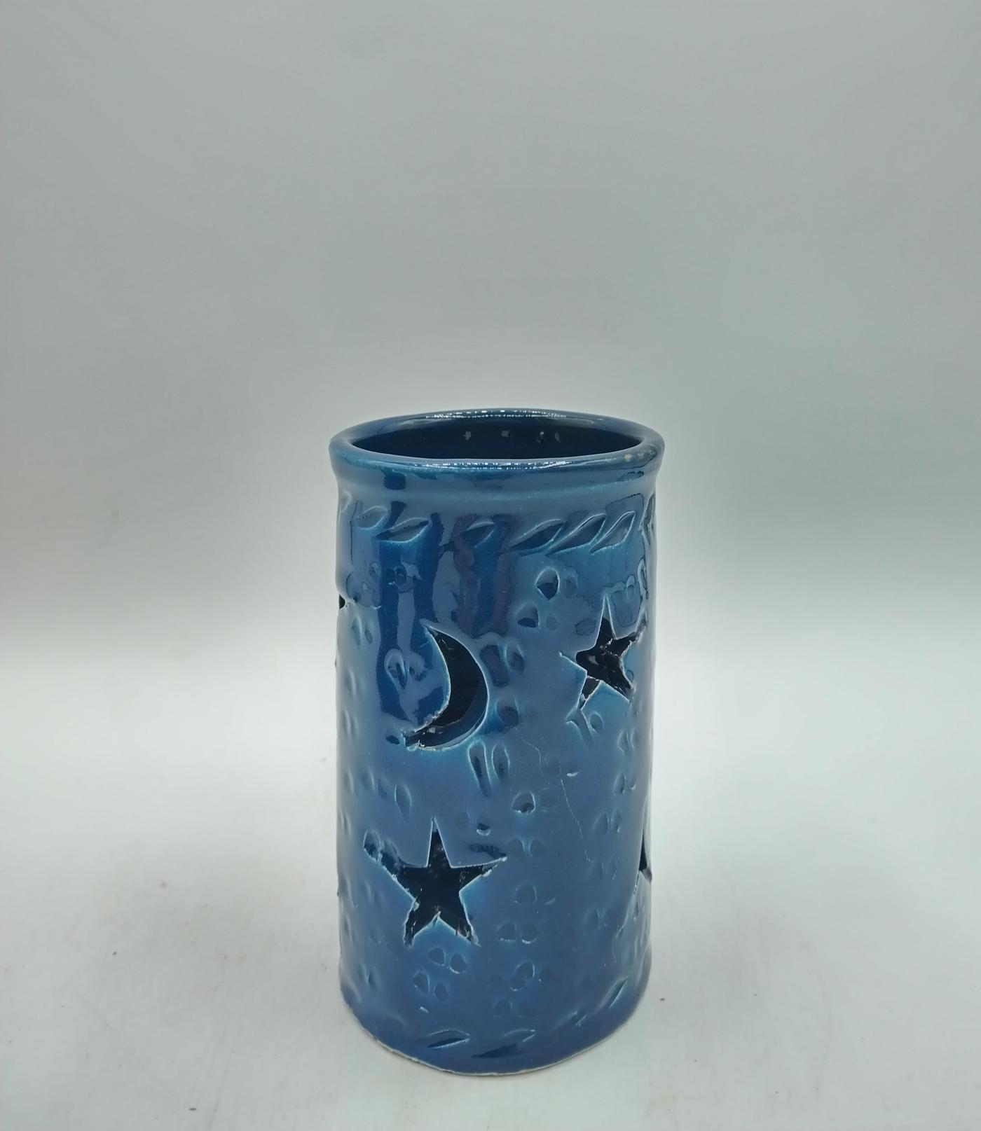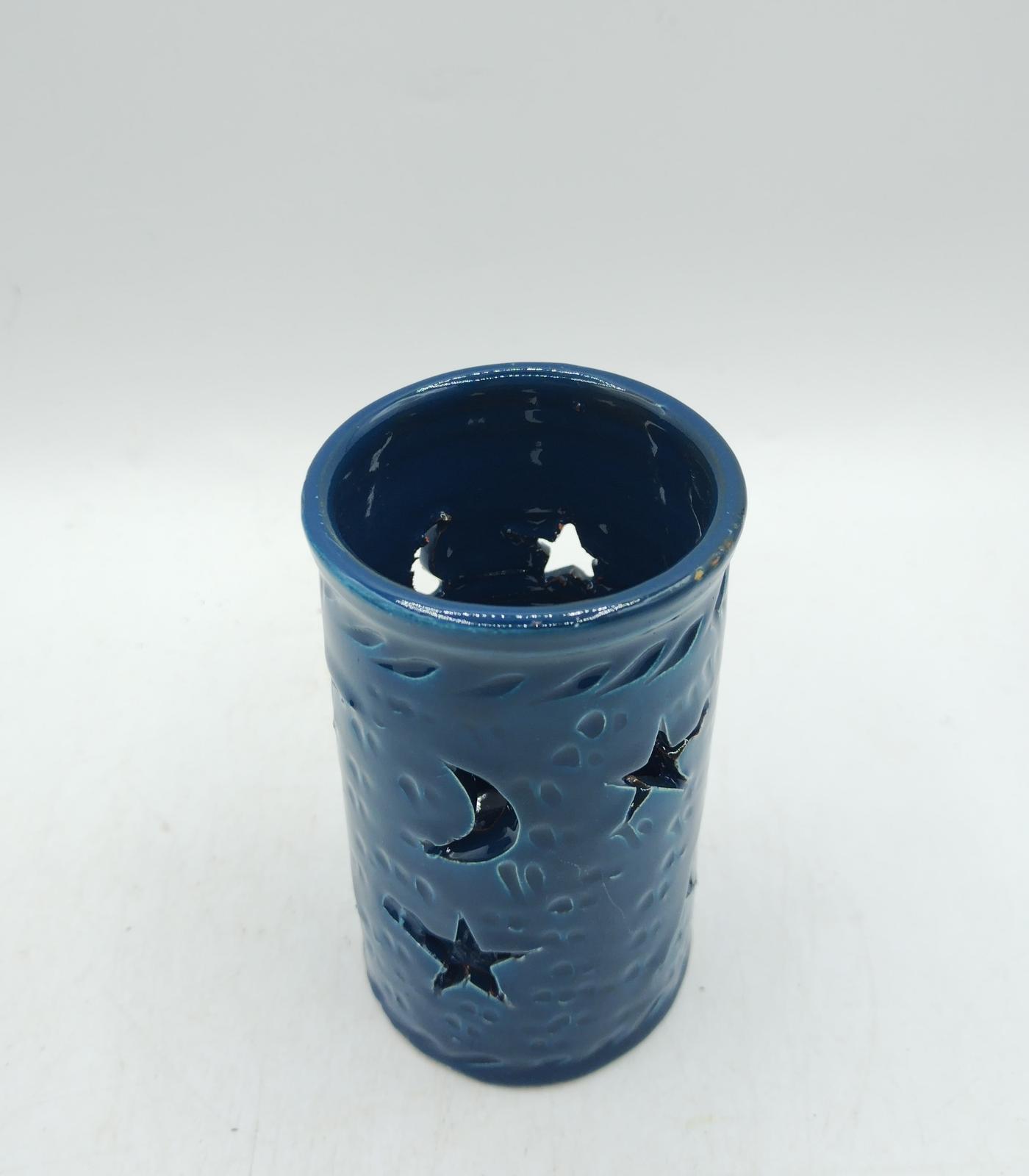 Lasciati avvolgere dalla magia del Marocco con il portacandela Najma, realizzato artigianalmente in terracotta smaltata blu petrolio.