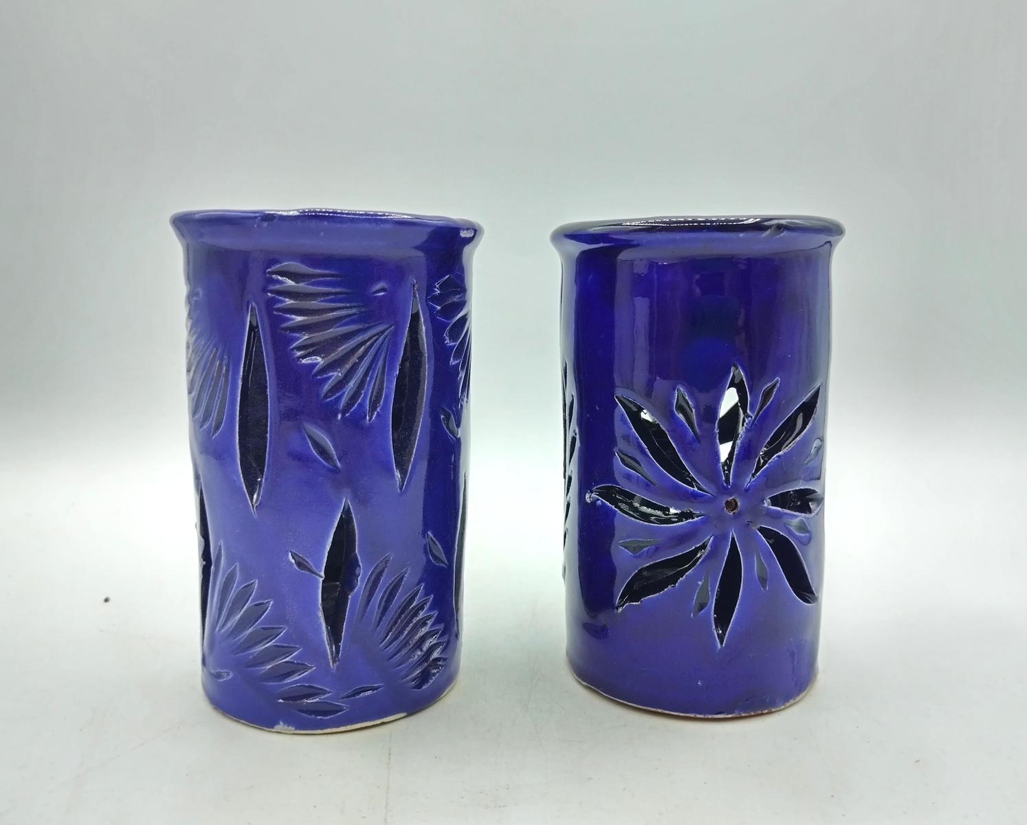 Portacandela realizzato artigianalmente in Marocco in terracotta smaltata traforata con motivi floreali e geometrici.