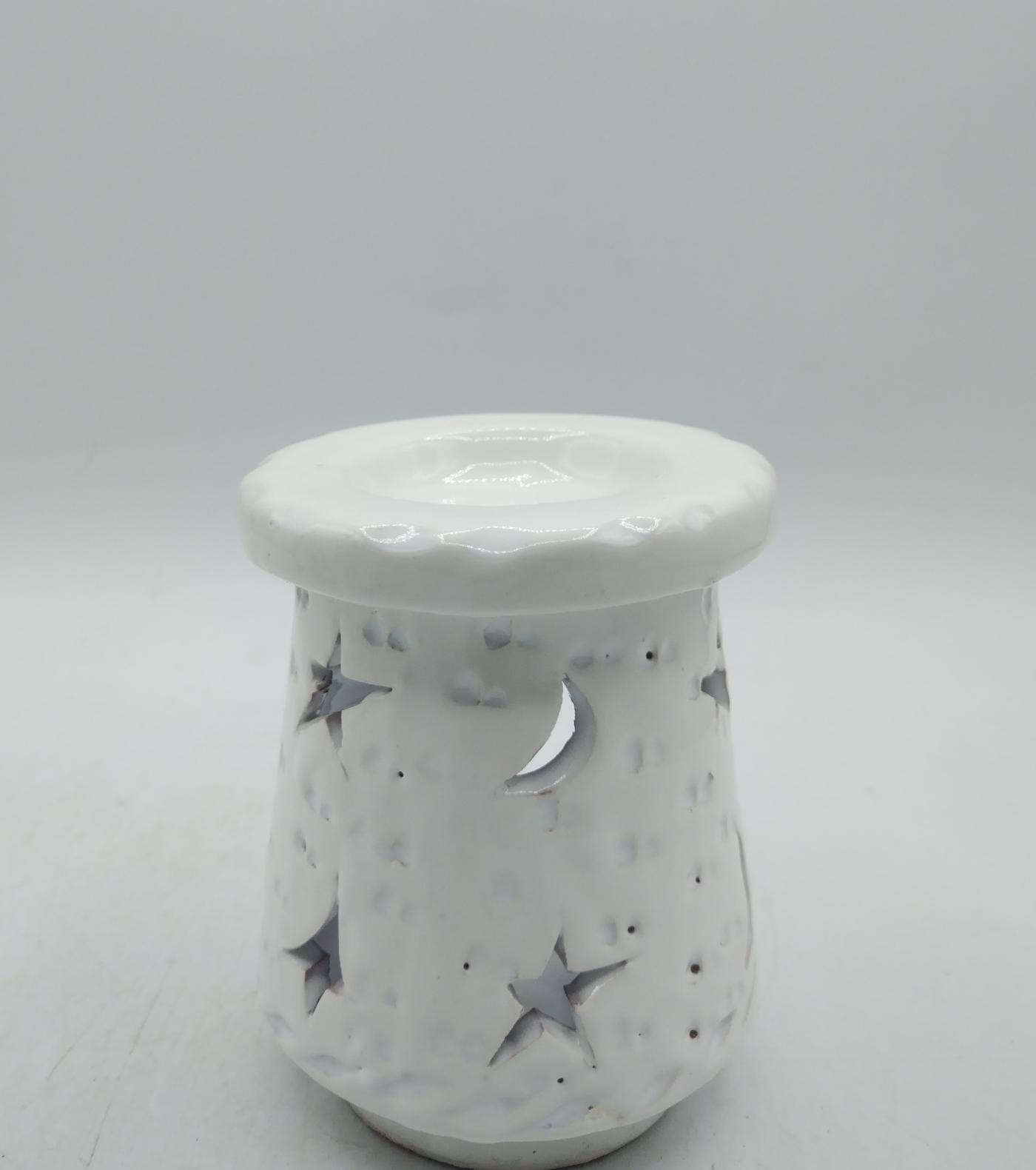 Nella parte frontale ha un apertura ad arco, in pieno stile marocchino, pensata per inserire facilmente la candela e lasciarne diffondere la luce mentre la parte superiore è piatta per posizionare oli essenziali.