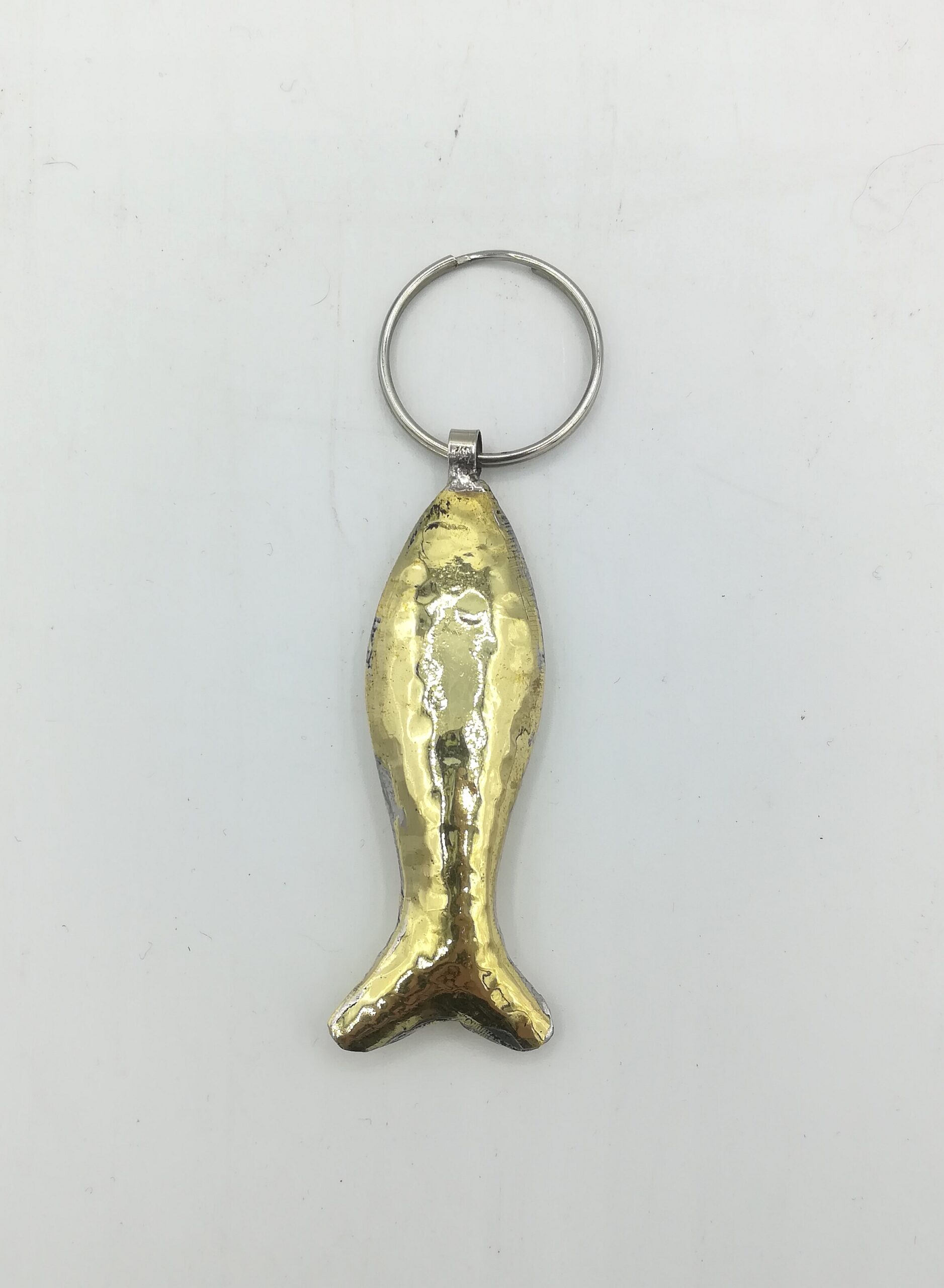 Portachiavi in metallo dorato sbalzato a mano realizzato in Marocco.