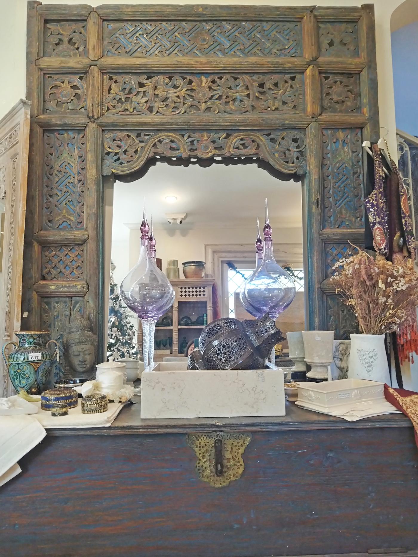 Questa meravigliosa cornice di forma quadrata, antica partizione di un tempio, può essere utilizzata in molti modi: come pannello decorativo, per incorniciare un passaggio tra due ambienti oppure come grande specchiera adornando un’intera parete.