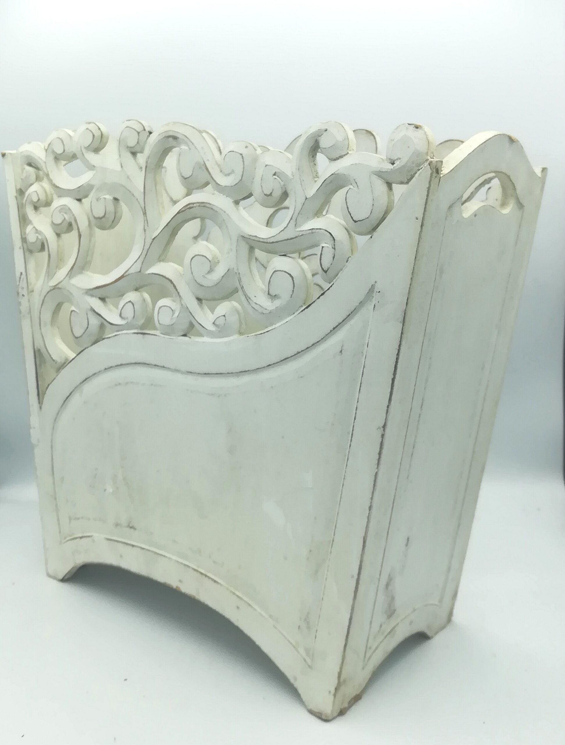 Porta riviste indonesiano stile shabby in legno colorato di bianco, con decori floreali