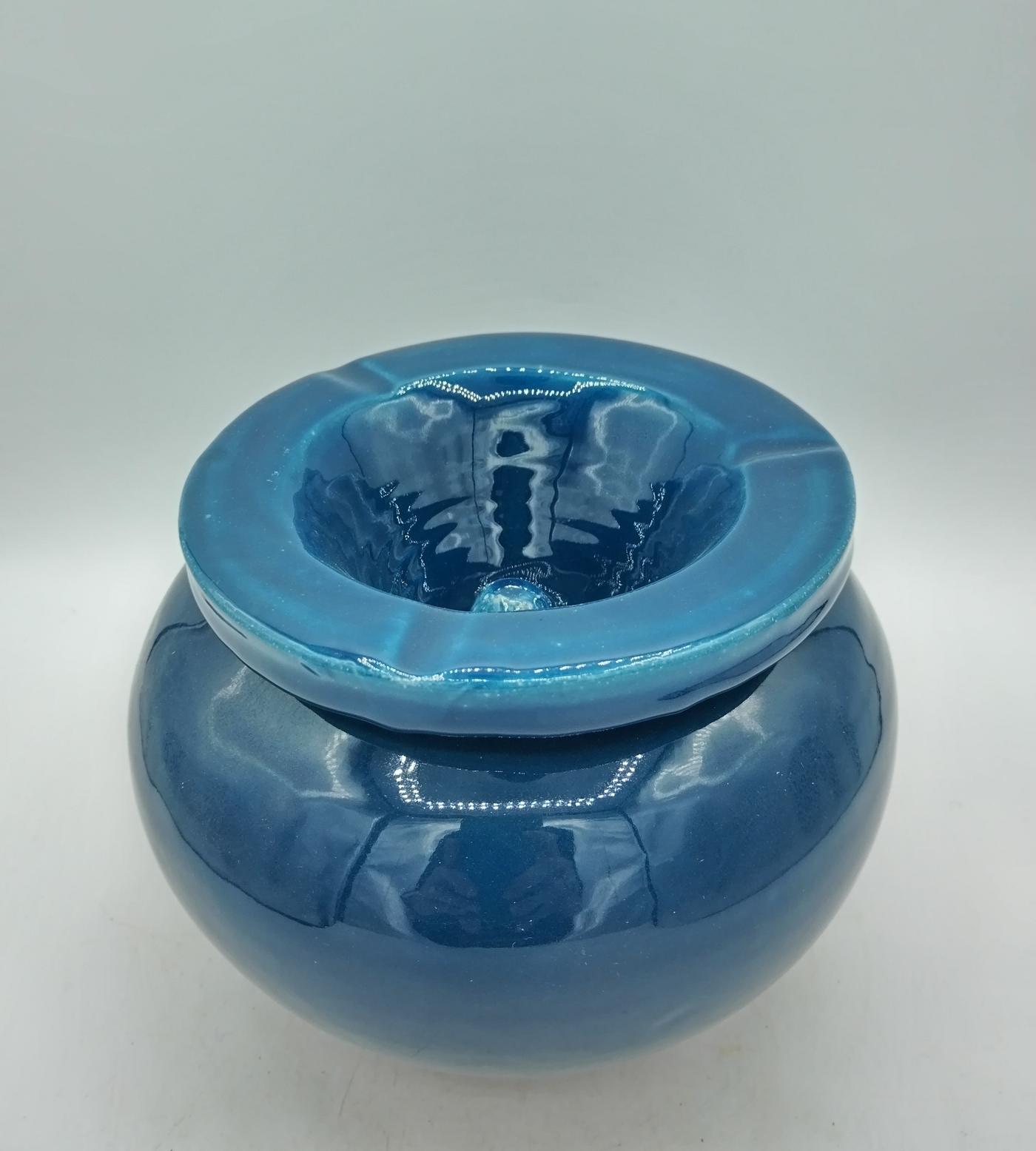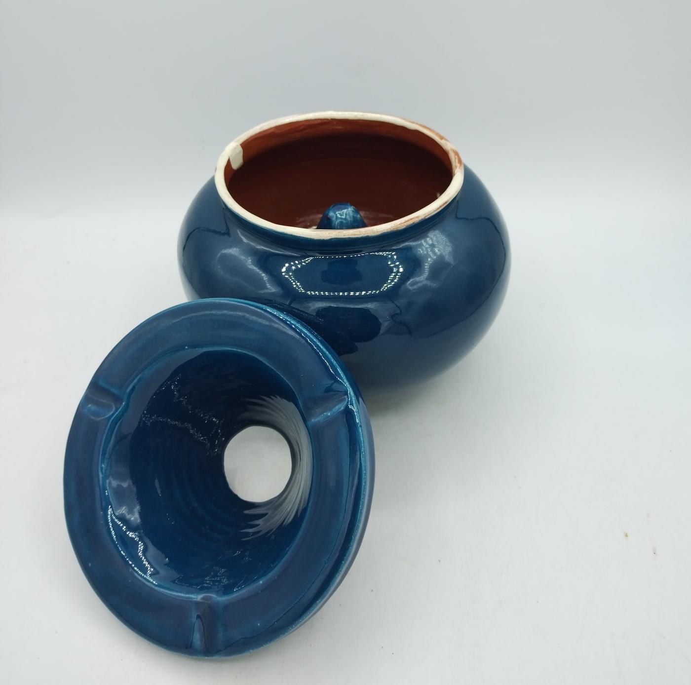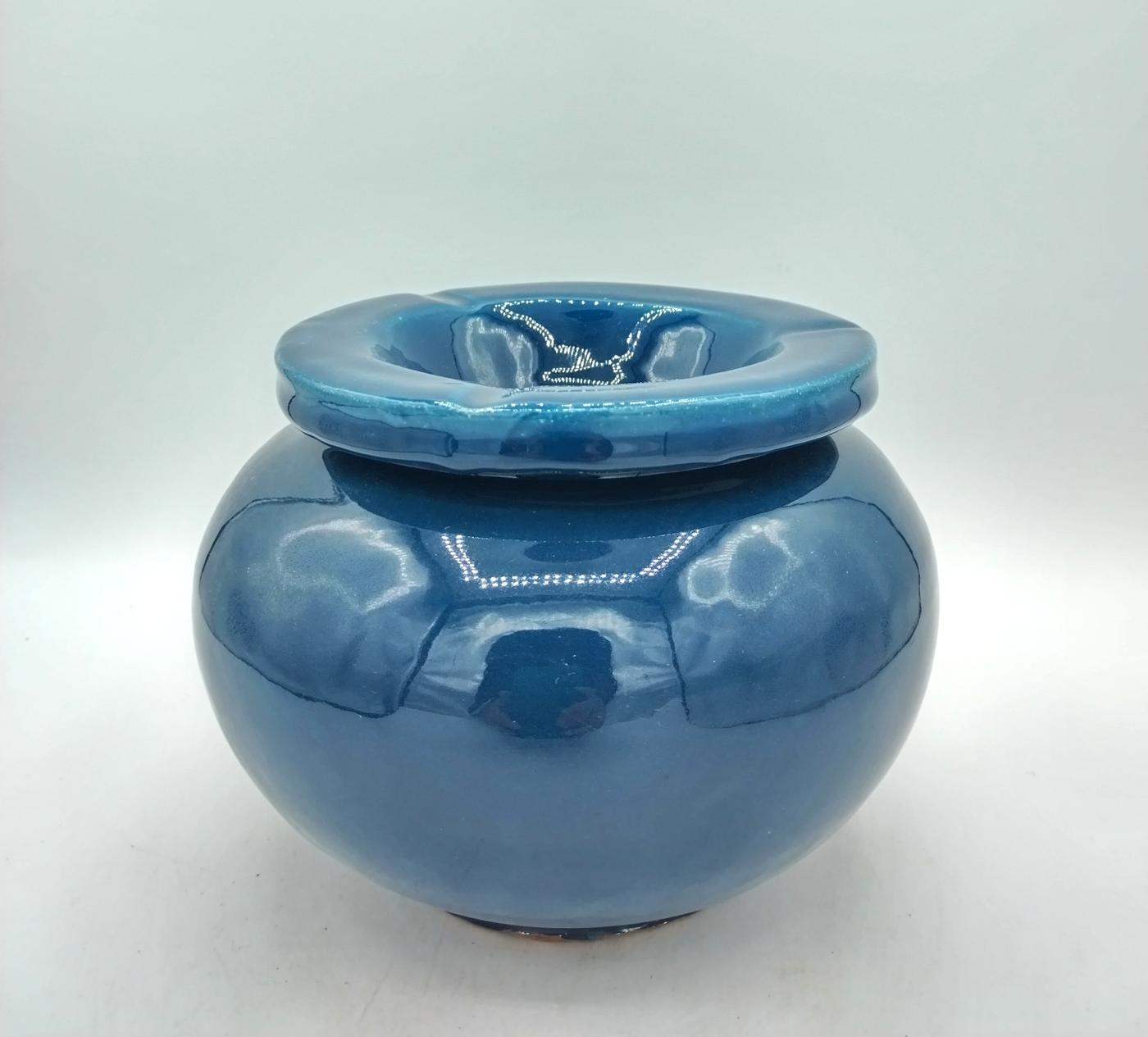 Posacenere in terracotta smaltata blu petrolio, realizzato artigianalmente in Marocco, essendo un prodotto artigianale potrebbe avere dimensioni leggermente diverse e piccole imperfezioni