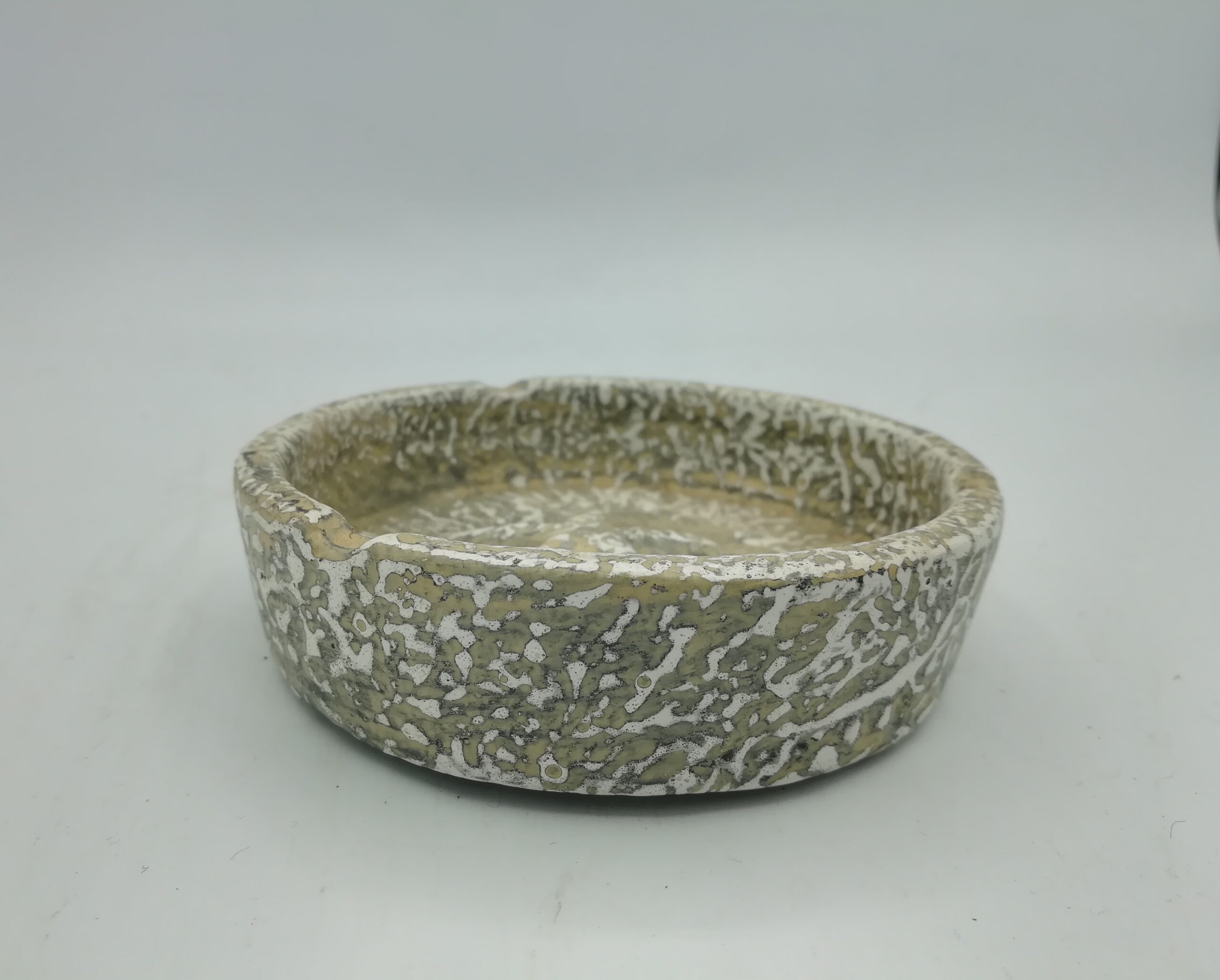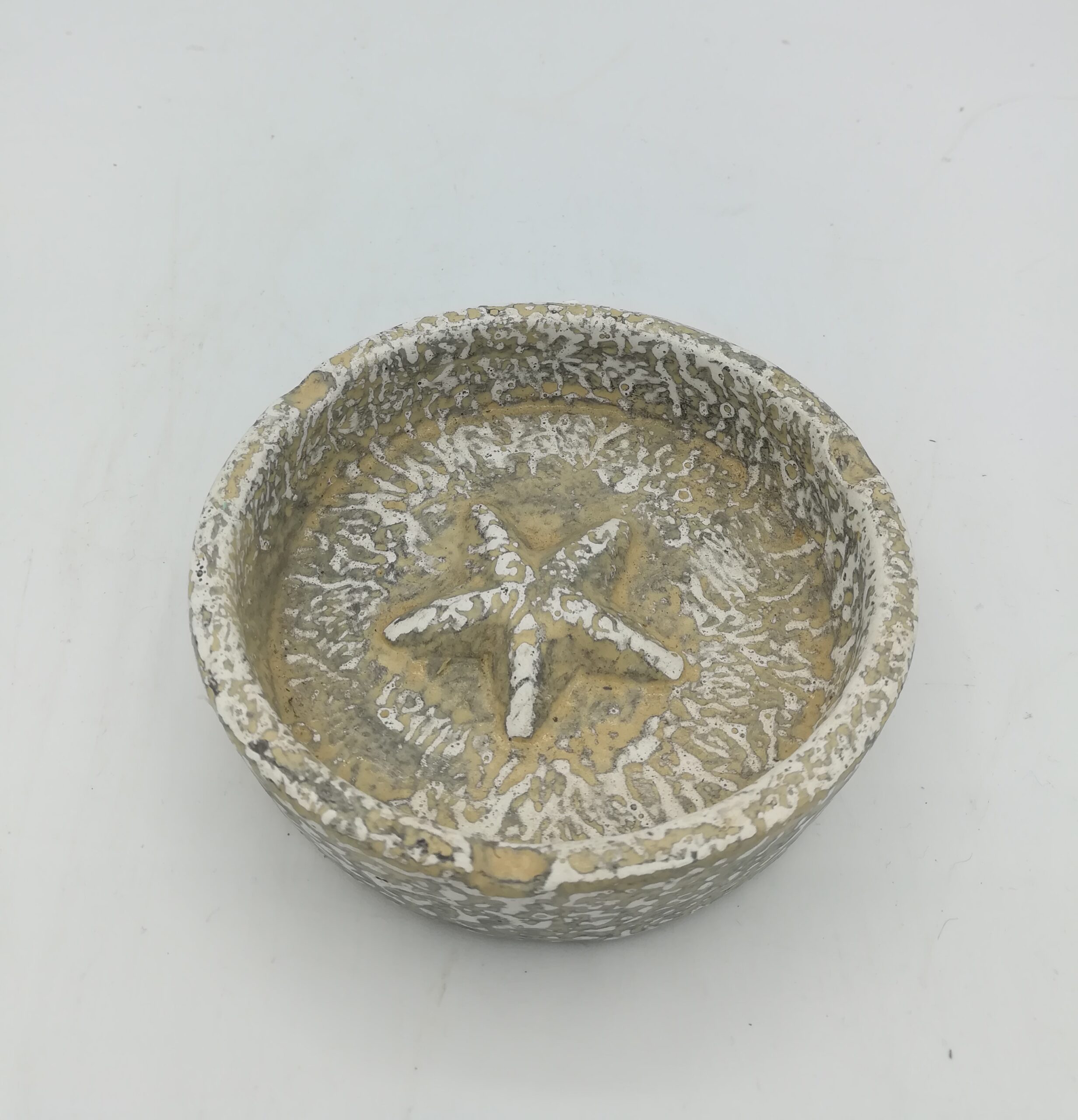Posacenere in terracotta, realizzato artigianalmente in Indonesia decapato grigio, con una stella marina al centro