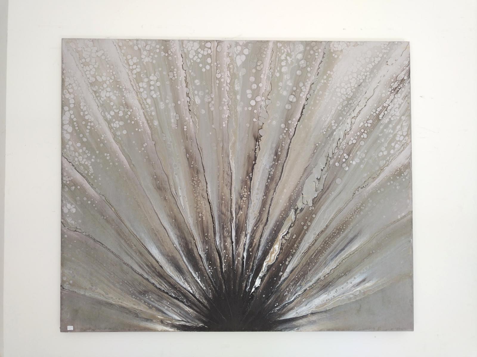 Quadro astratto di un artista balinese sui toni del grigio, del nero e del bianco