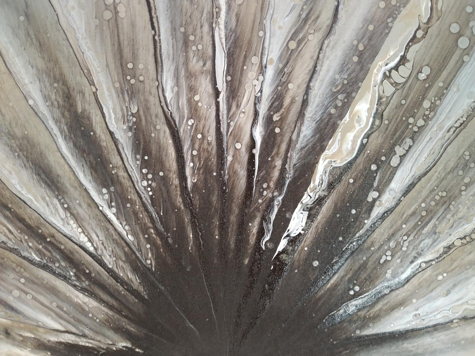 Nella sua composizione, potresti trovare varie sfumature di nero, grigio e bianco che si mescolano e si sovrappongono in un intricato gioco di forme e linee. Il nero domina la scena, portando una sensazione di profondità e mistero, mentre il grigio e il bianco creano contrasti e punti di luce che attirano l’attenzione.