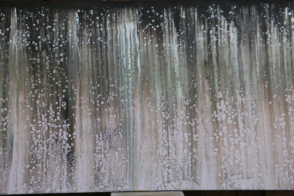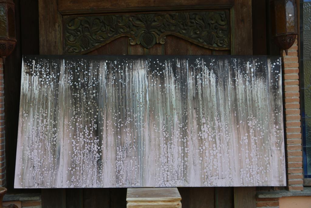 Quadro astratto di un artista balinese sui toni del grigio, del nero e del bianco