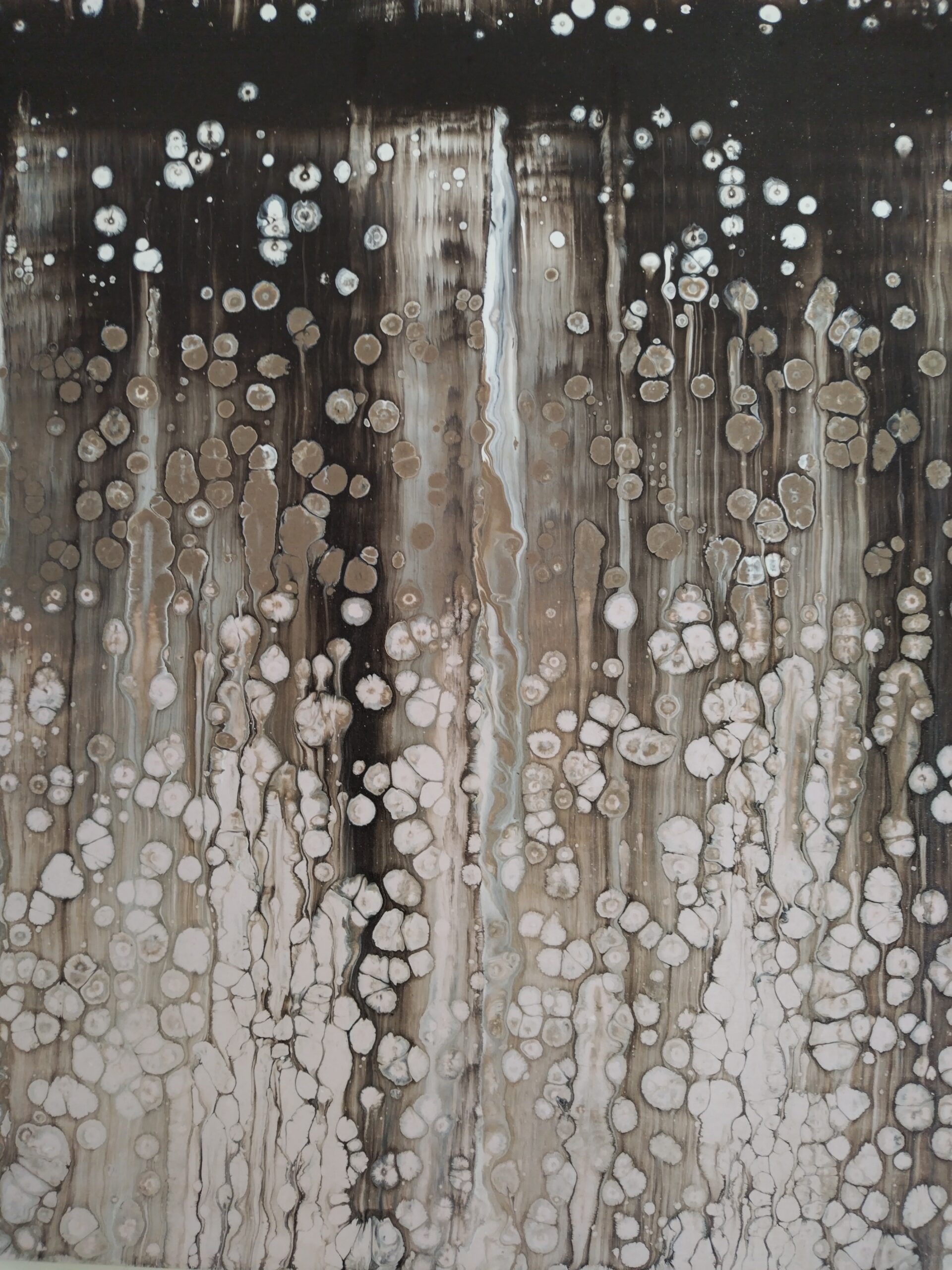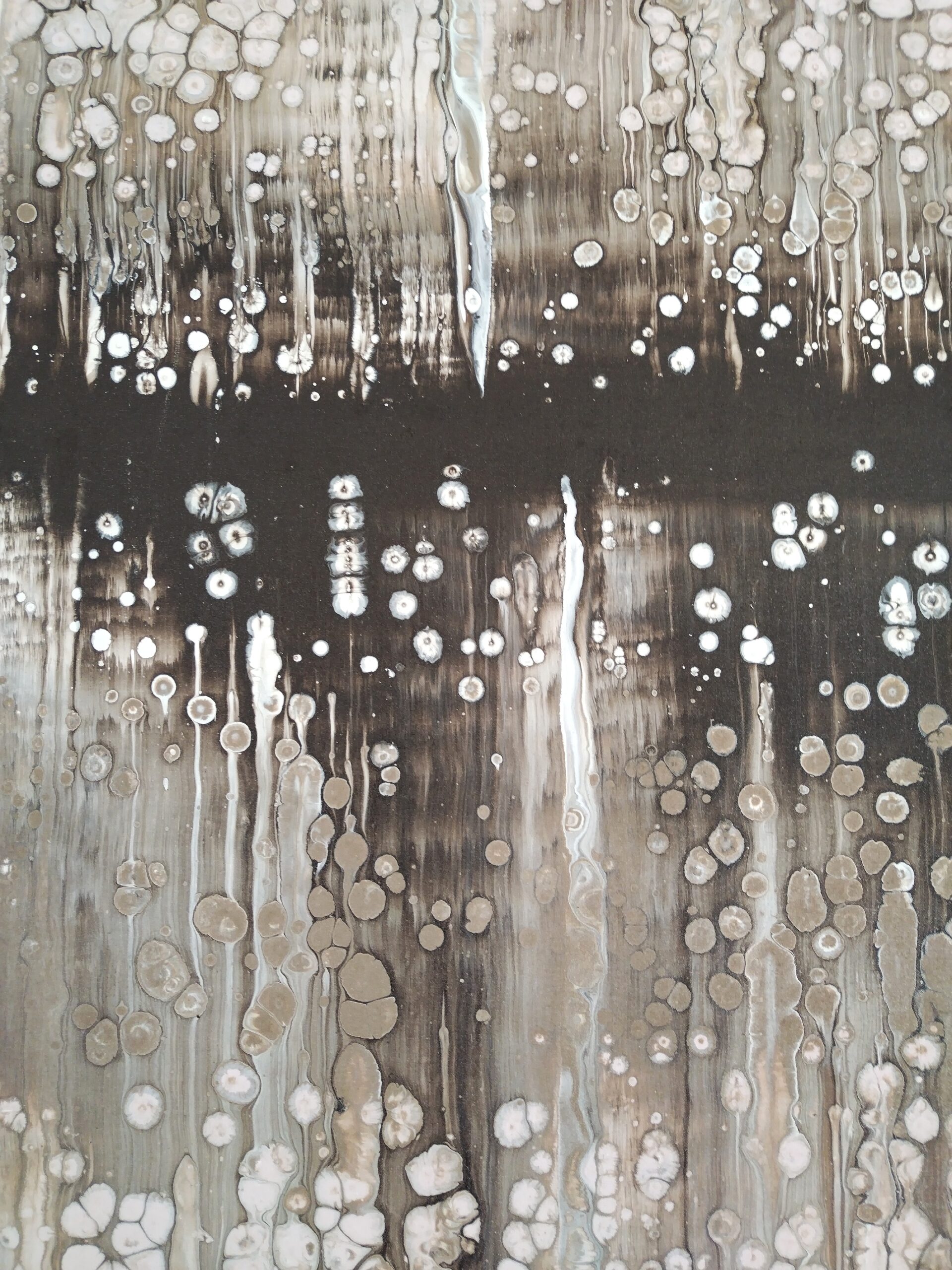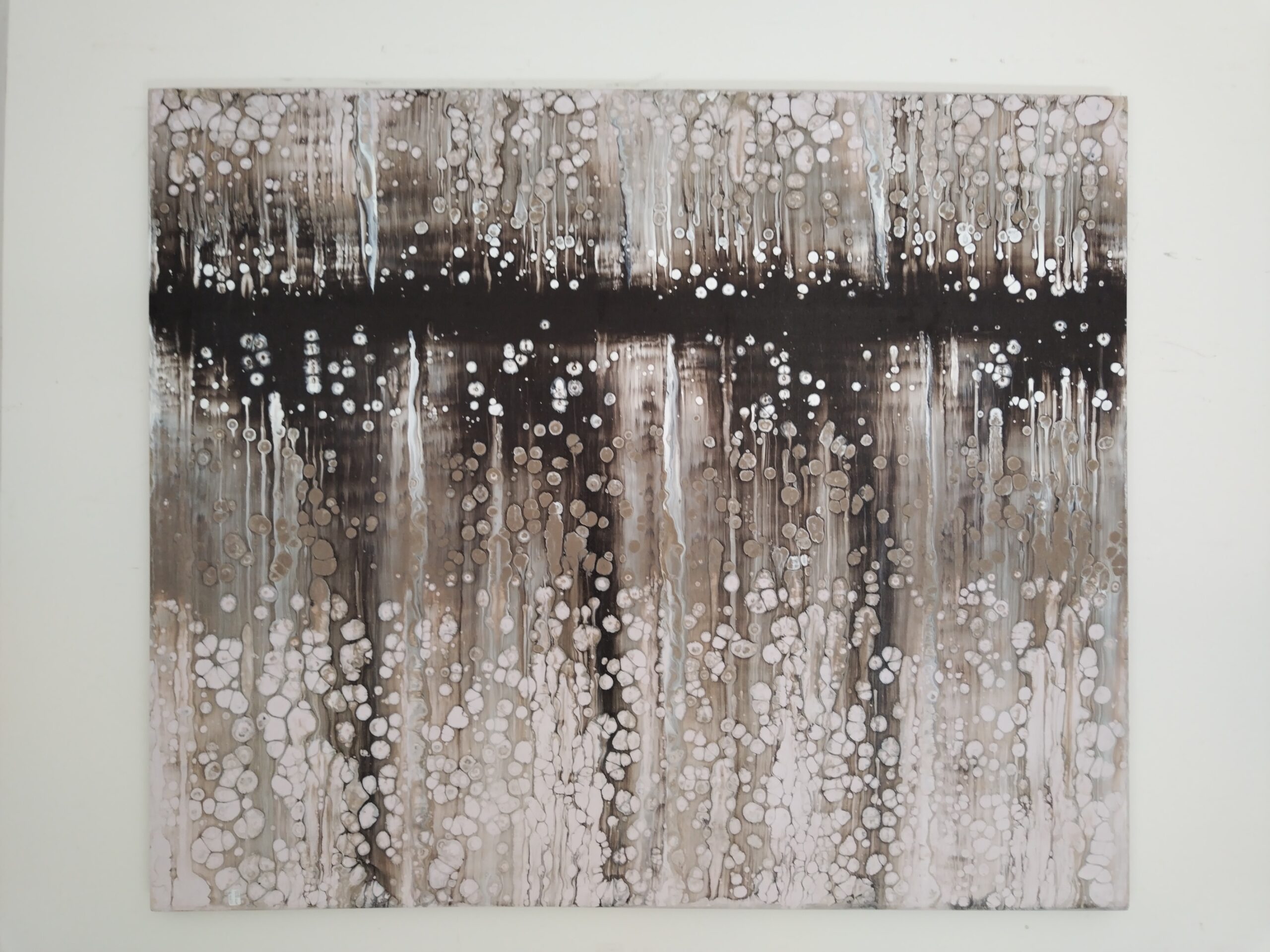 Quadro astratto di un artista balinese sui toni del nero, del grigio e del bianco