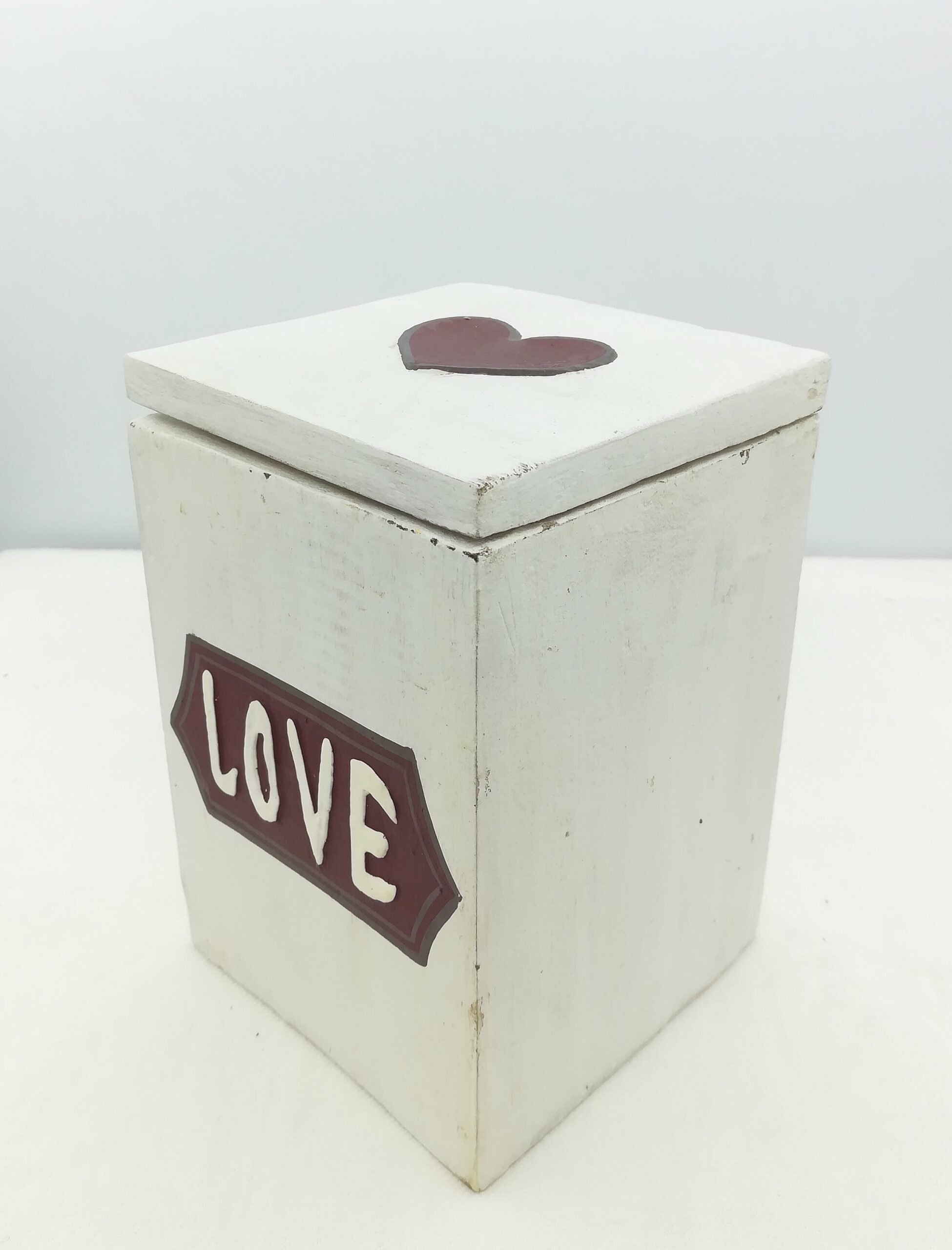 La scatola Love, dal fascino rustico, realizzata artigianalmente in Indonesia, con un design semplice.