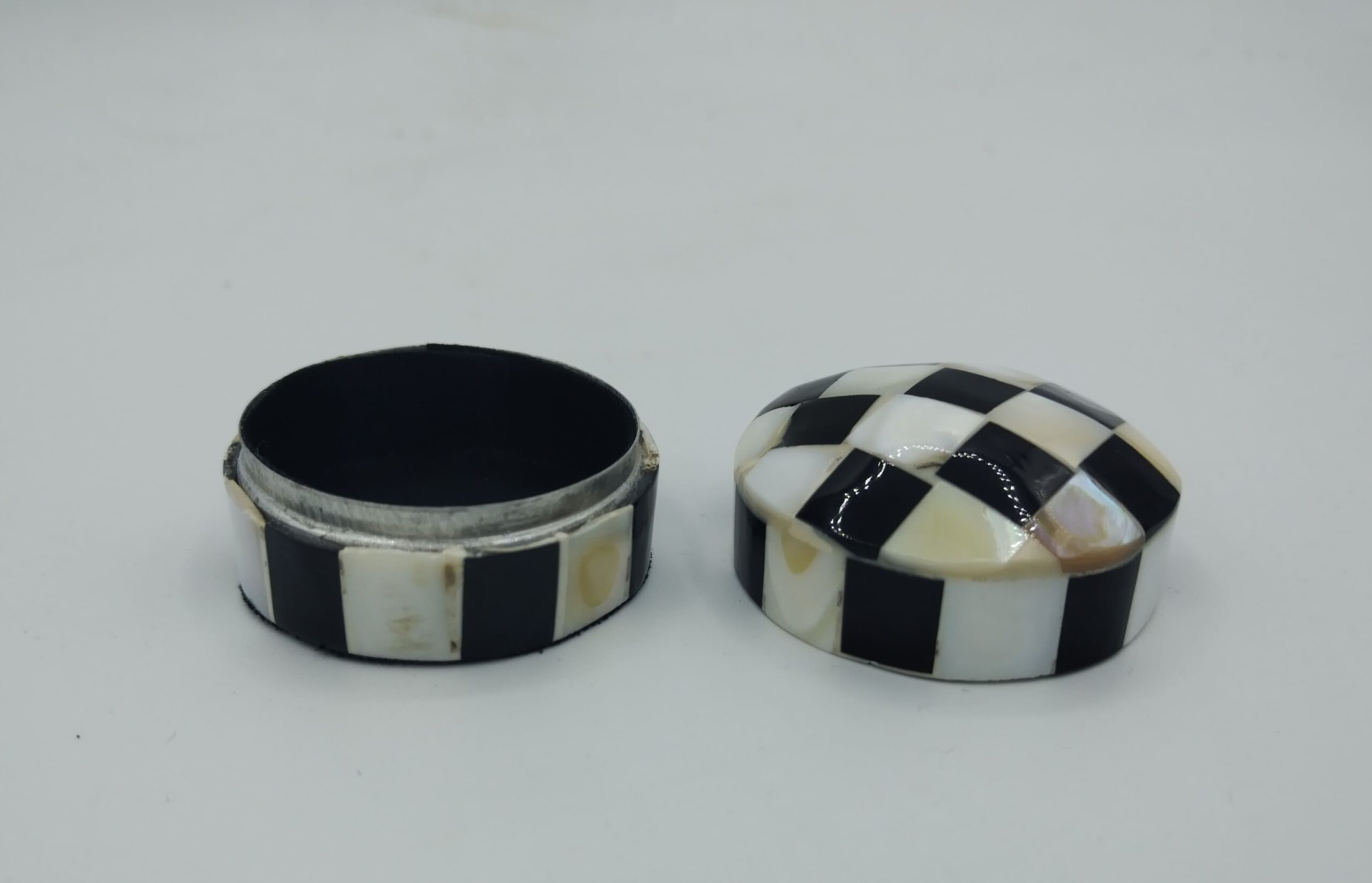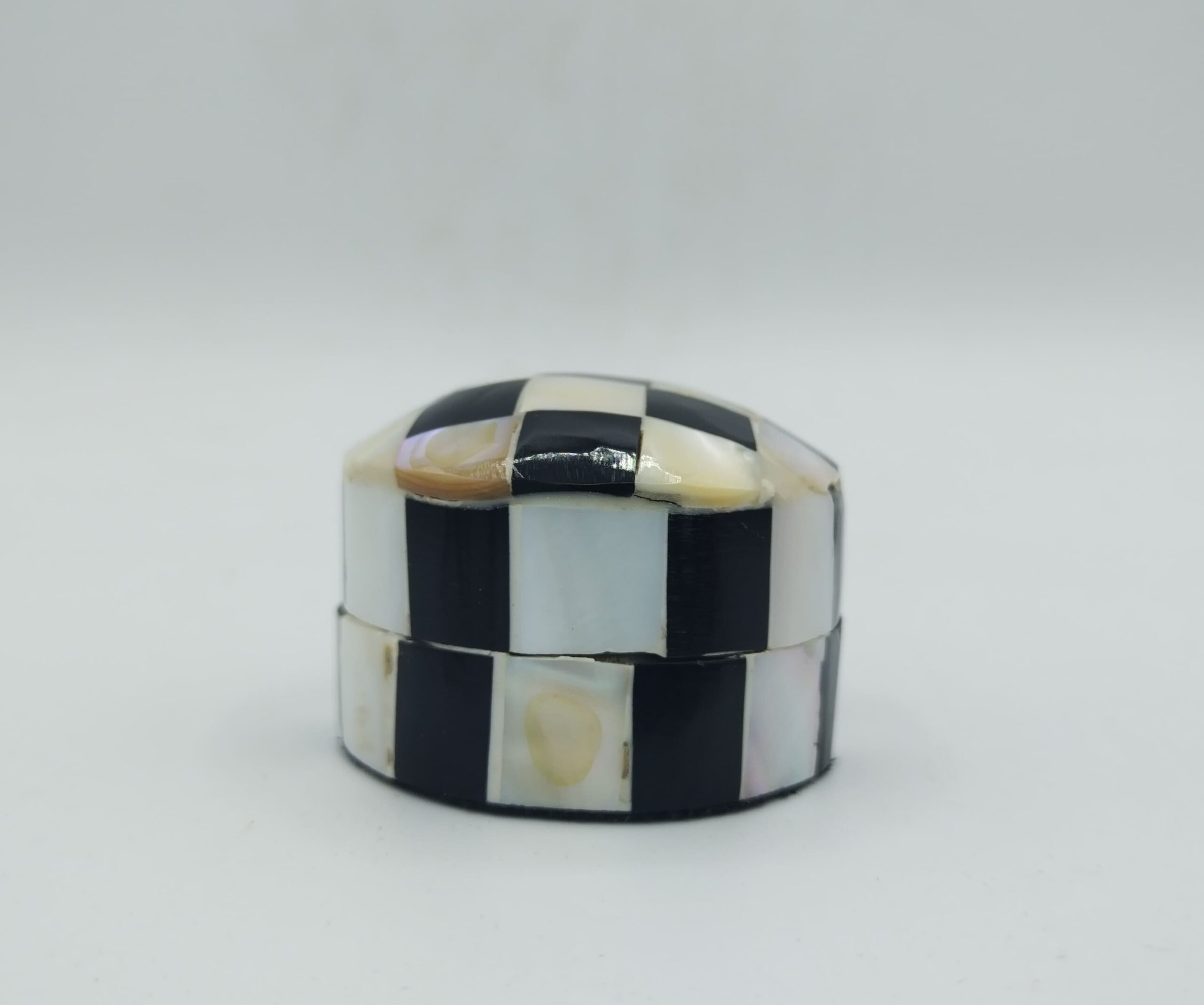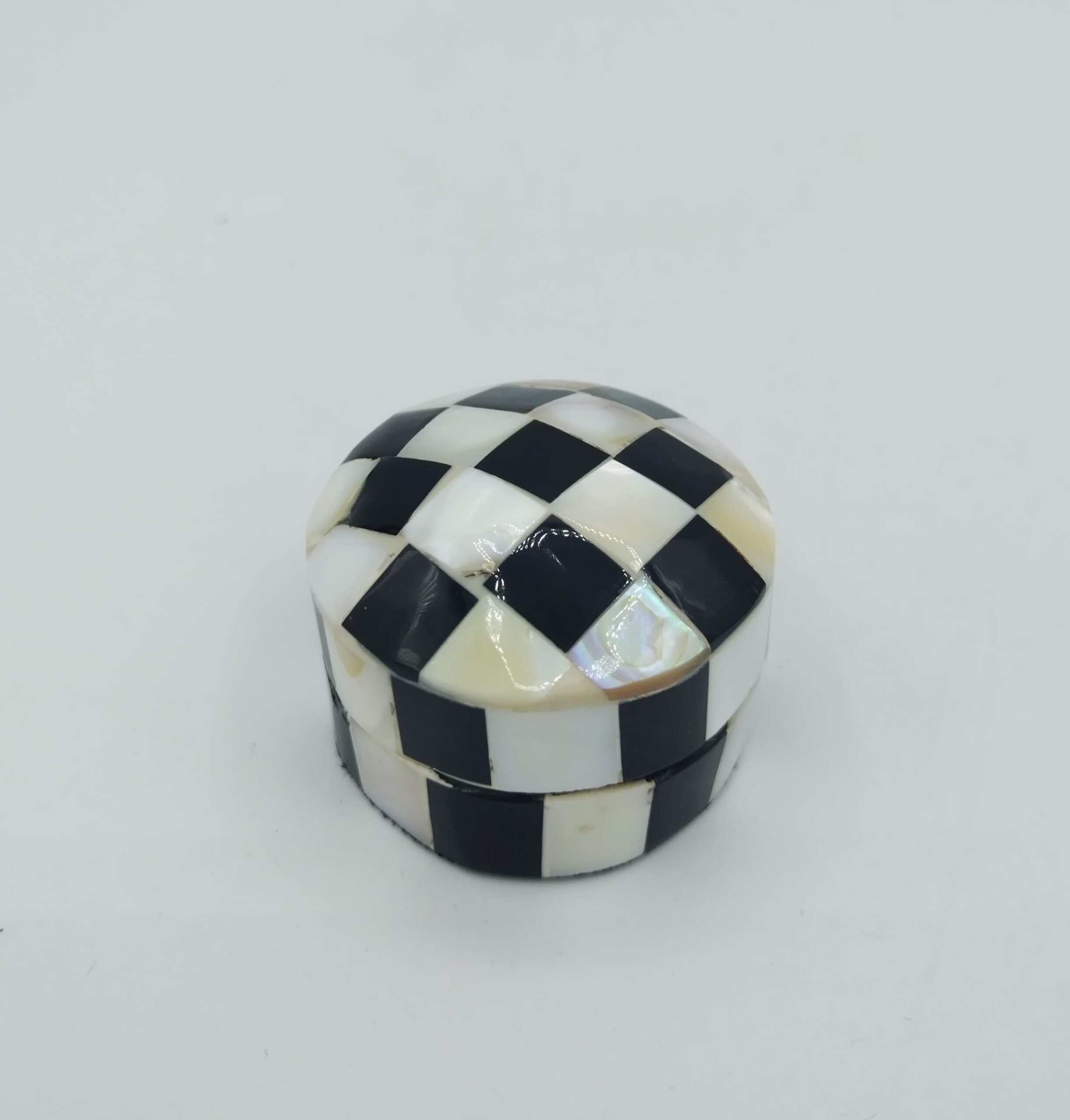 Scatola realizzata artigianalmente in Marocco, in madre perla con fantasia a scacchi