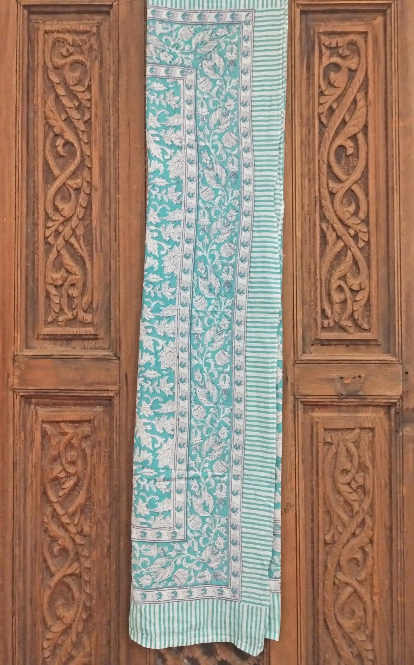 Questo telo nasce in India, frutto del lavoro accurato di artigiani locali che ancora oggi tramandano tecniche tradizionali di stampa su tessuto.