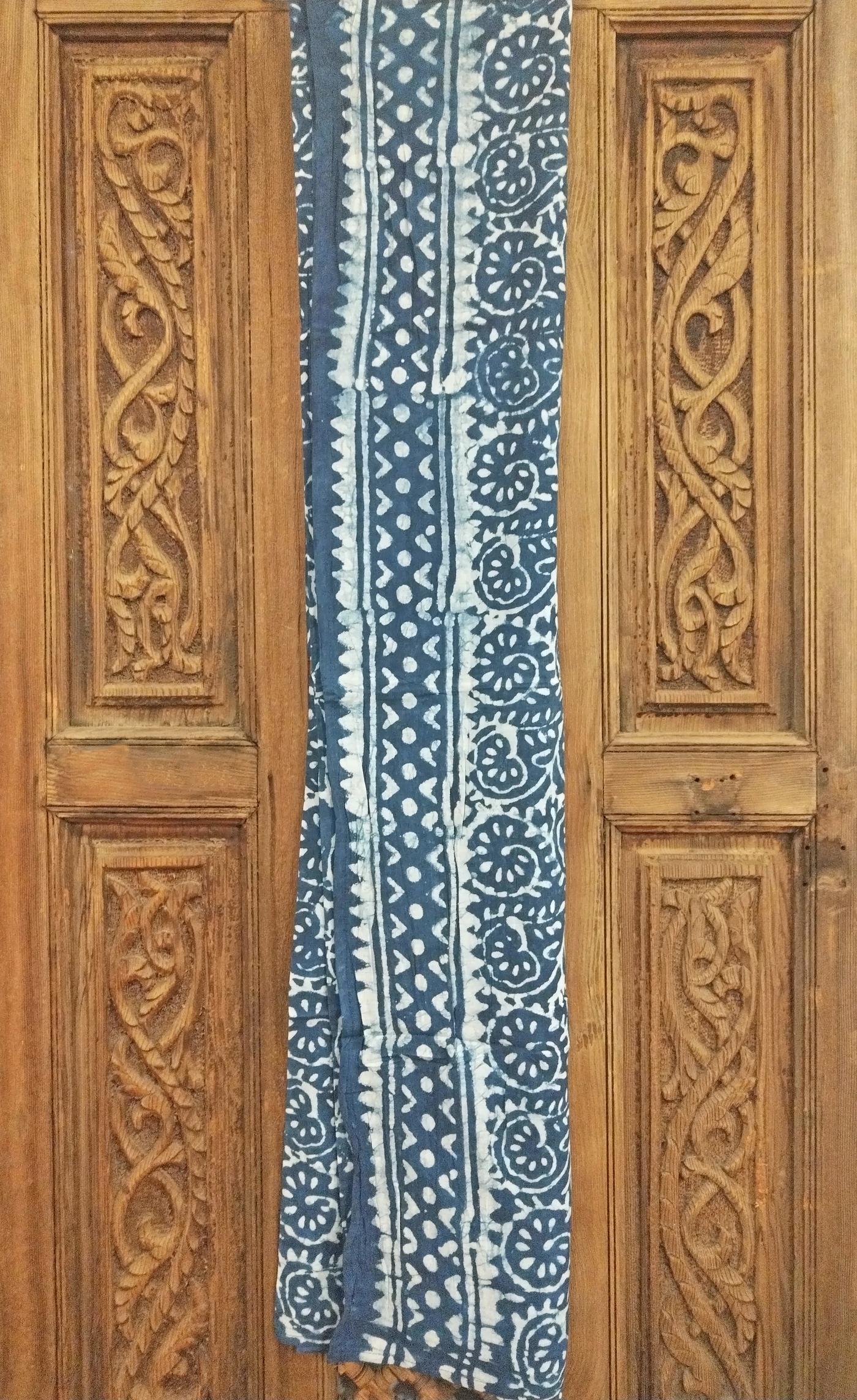 Sciarpa realizzata in India, in cotone a motivi geometrici e floreali con la tecnica del batik