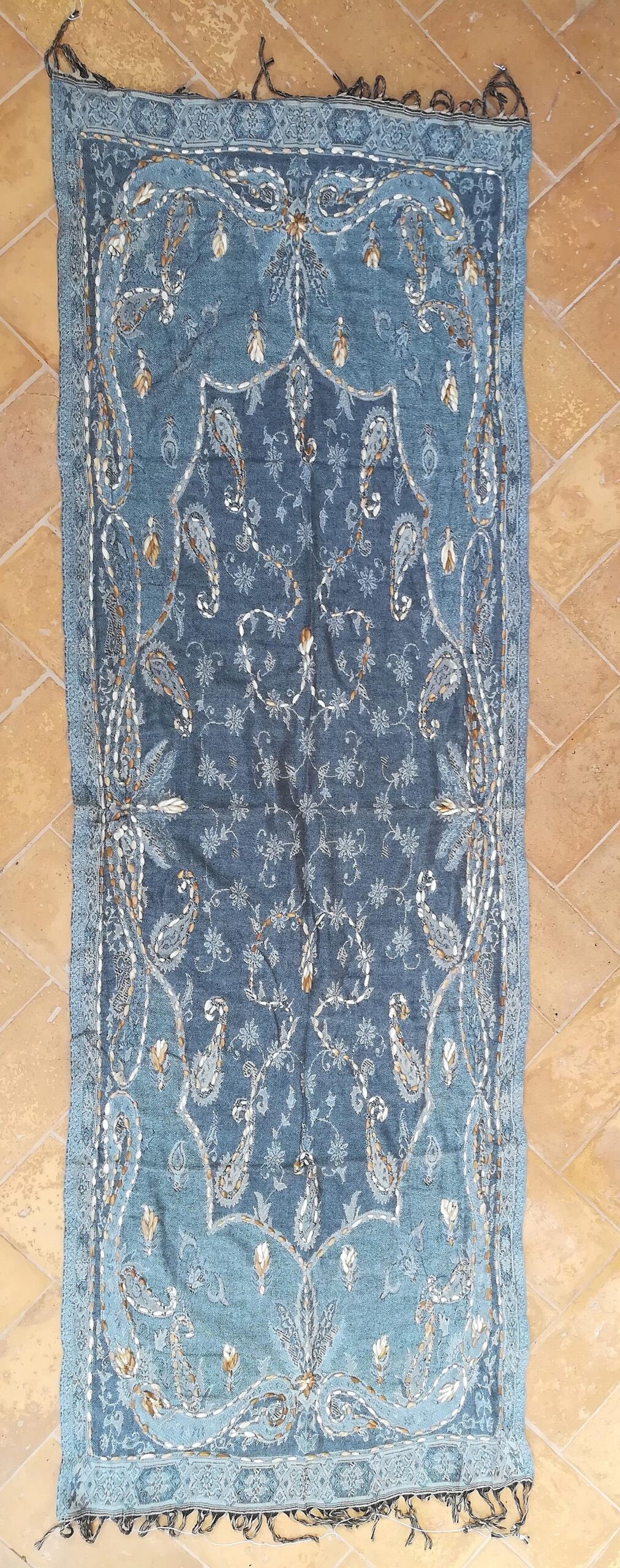 Si tratta di una sciarpa indiana di grandi dimensioni, realizzata con un morbido mix di cachemire e lana, che la rende estremamente avvolgente e confortevole.
