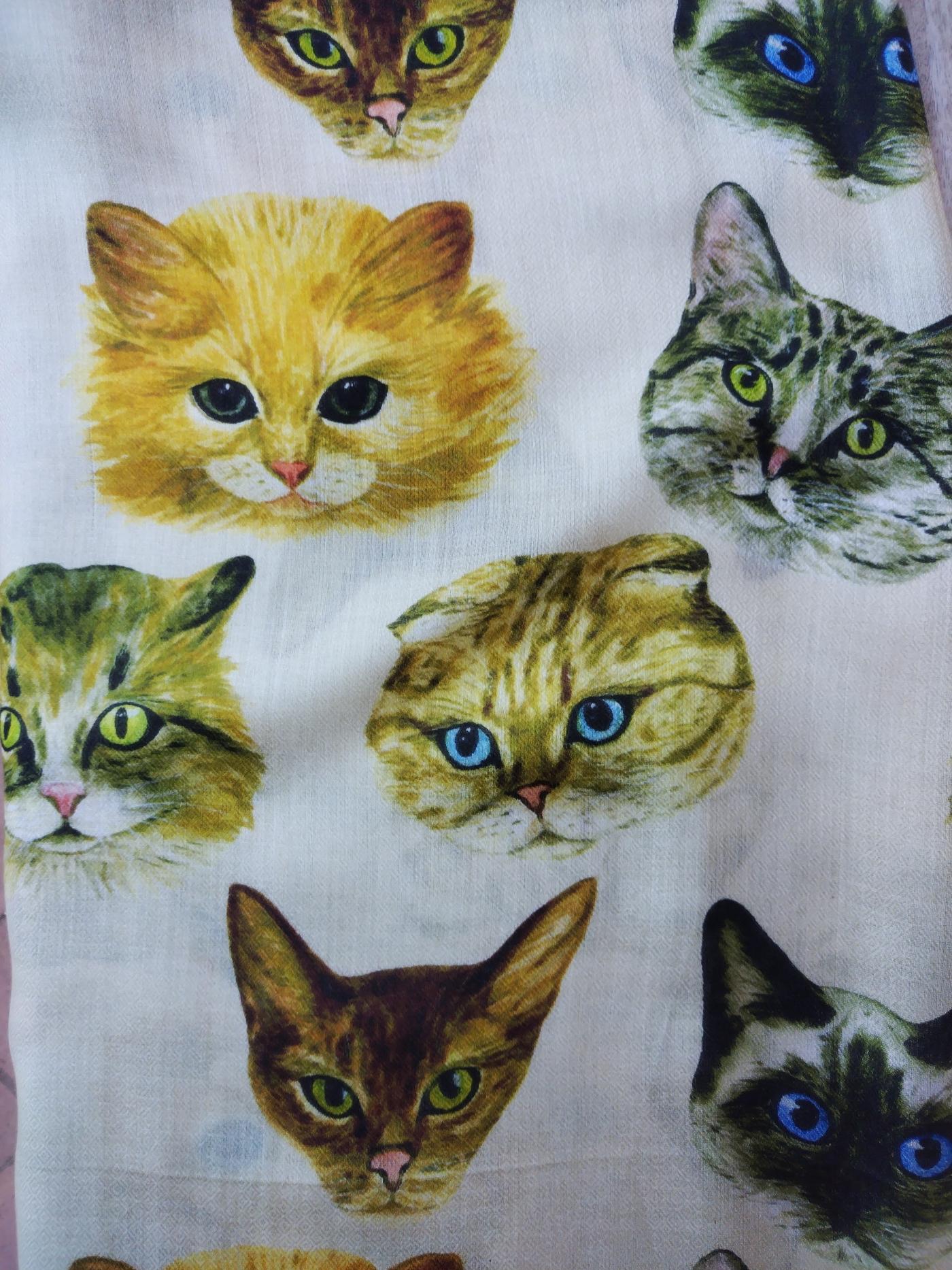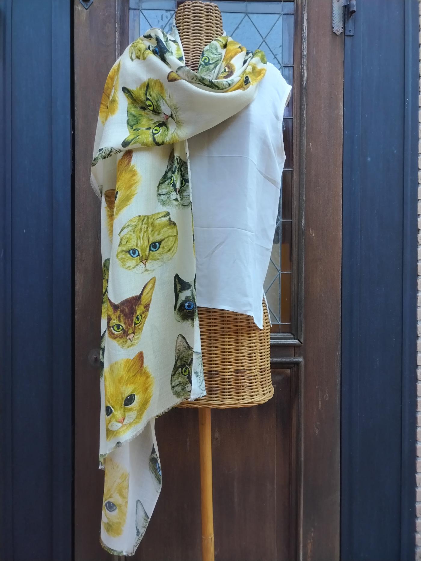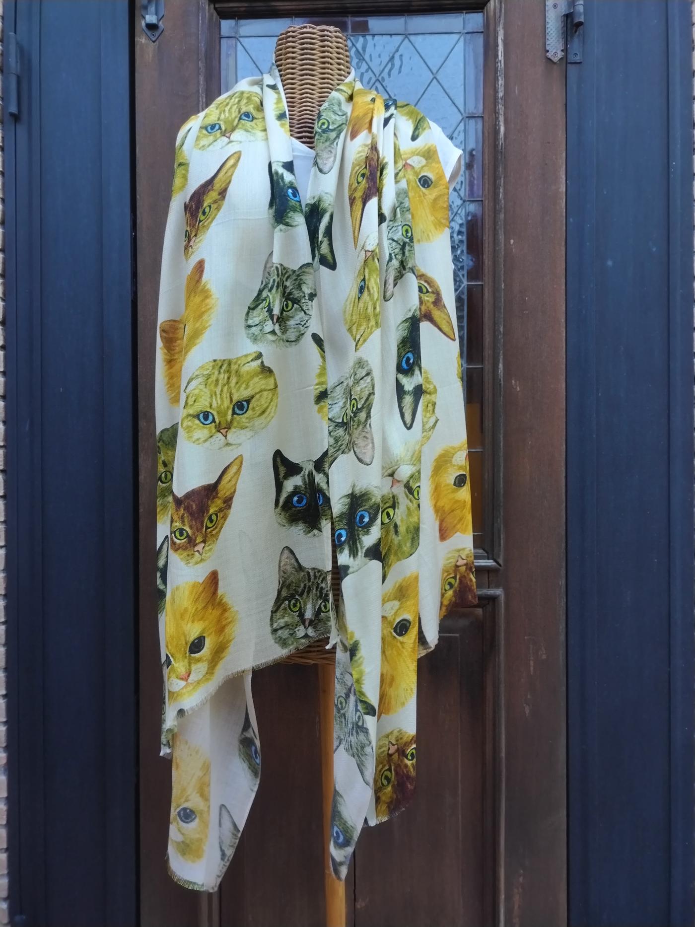 Sciarpa realizzata in India in modal color panna, con disegni di gatti