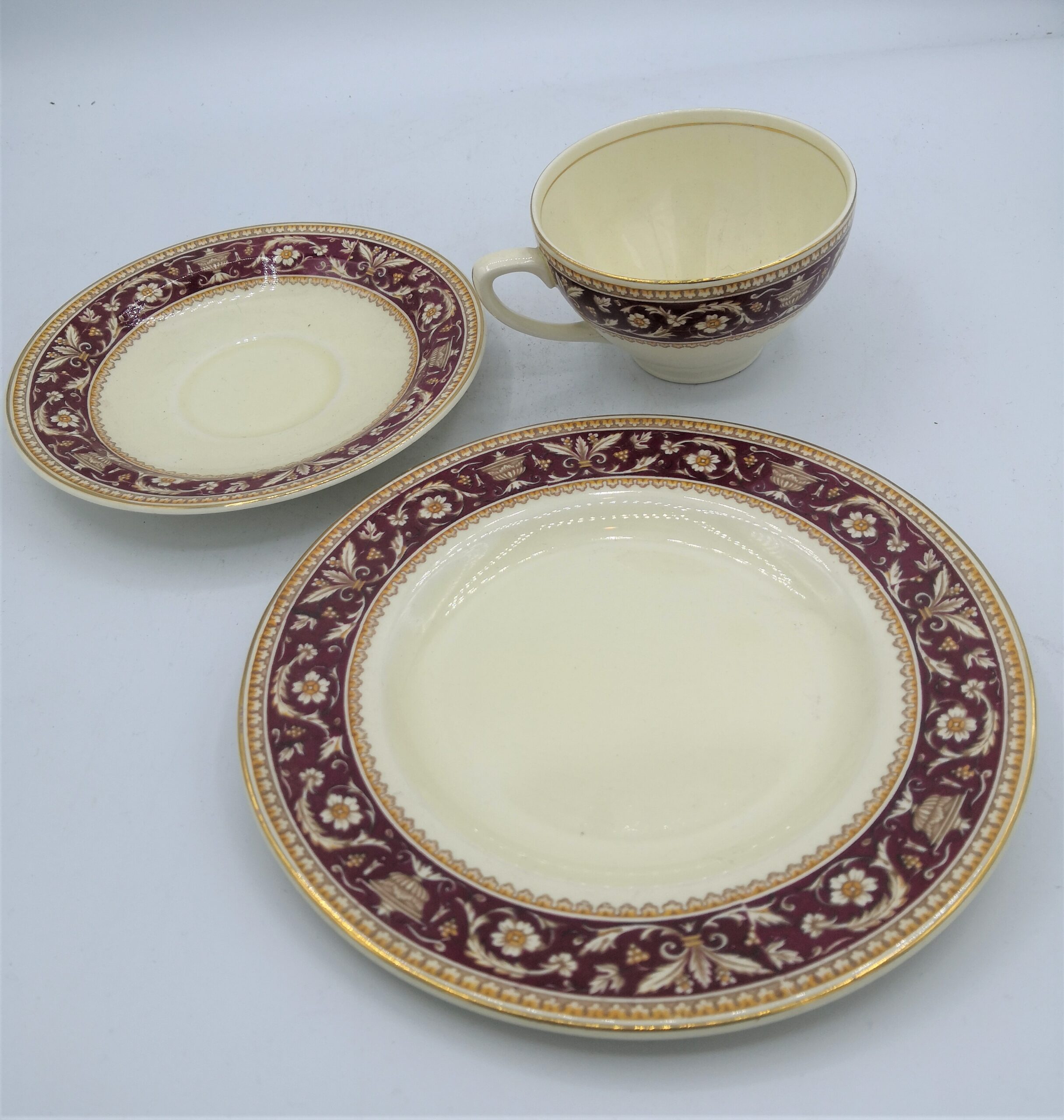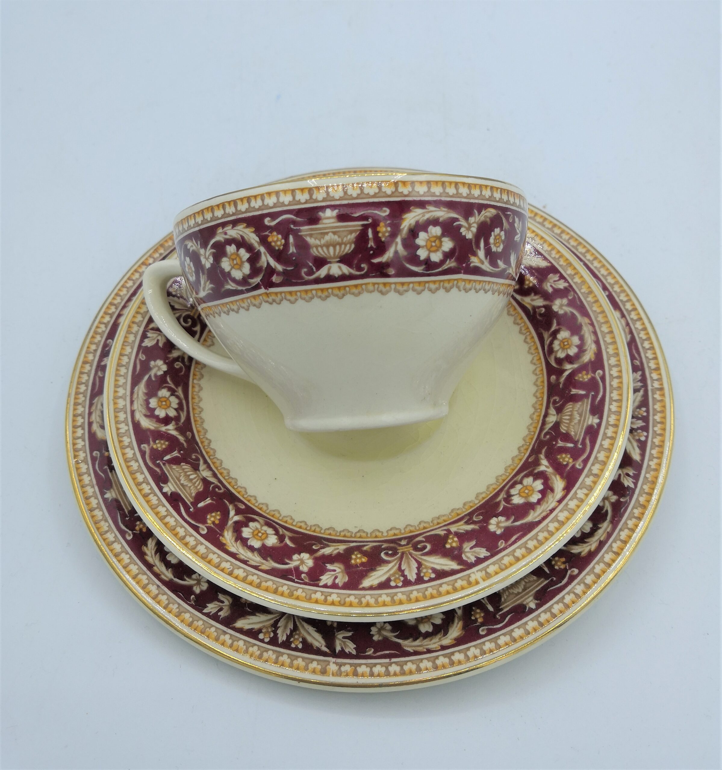 Perfetto come set integro da collezionare o riutilizzare, risalente ai primi Novecento, sul retro di ogni tazza riporta il marchio “Woods England”.