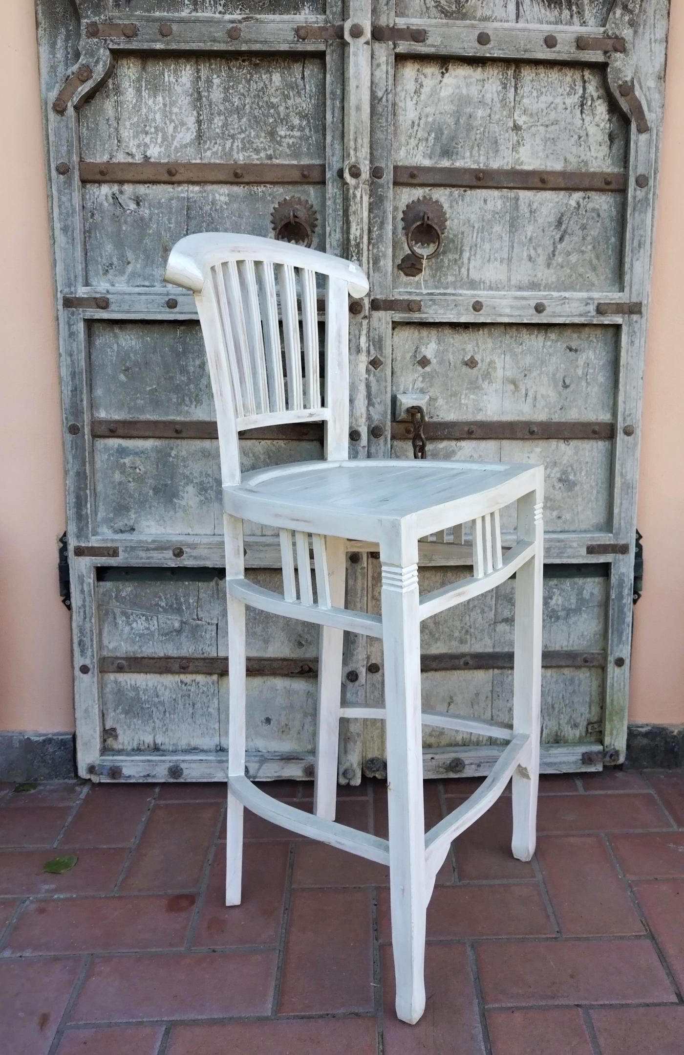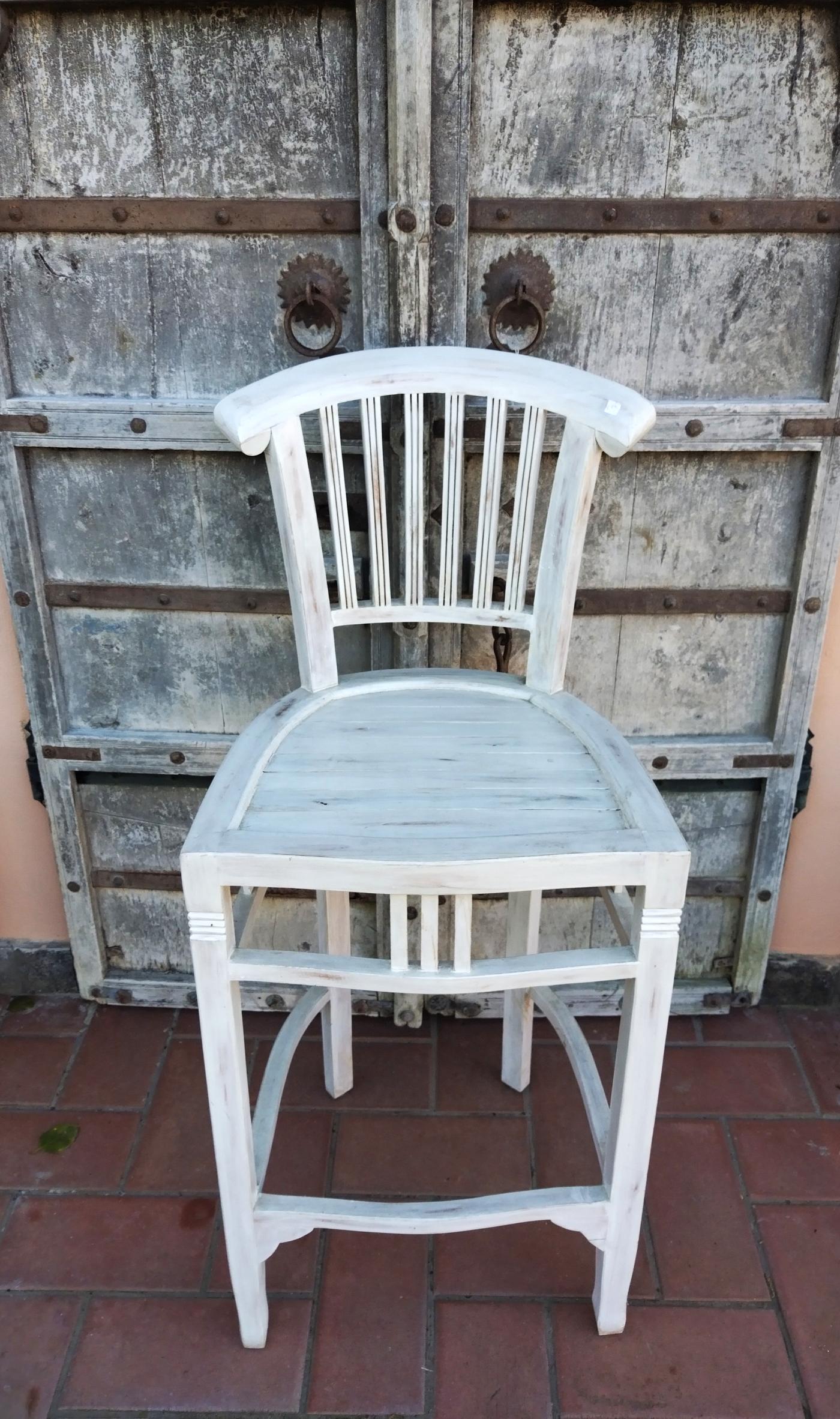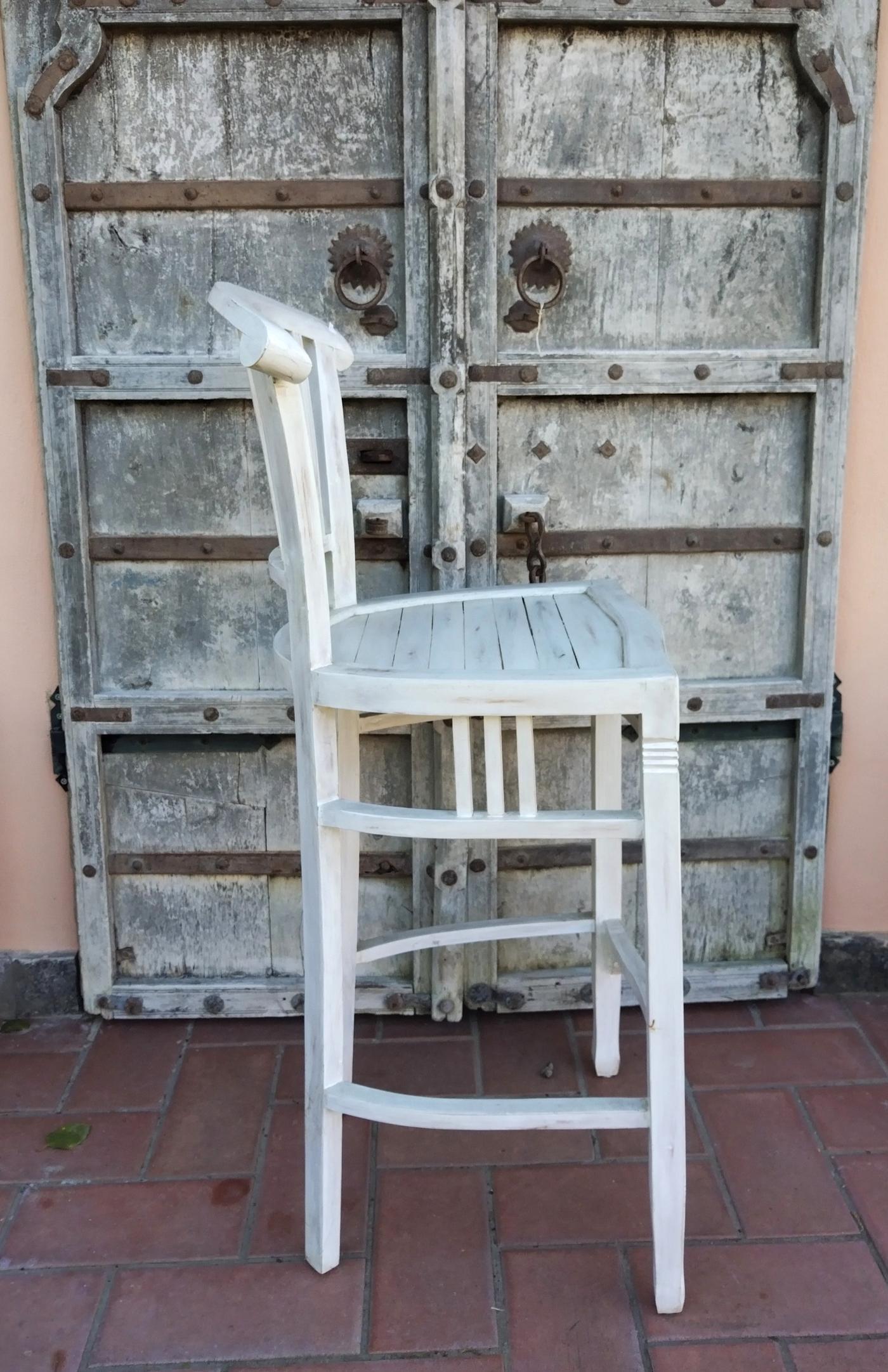 Sgabello in legno di teak dipinto di bianco, realizzato in Indonesia