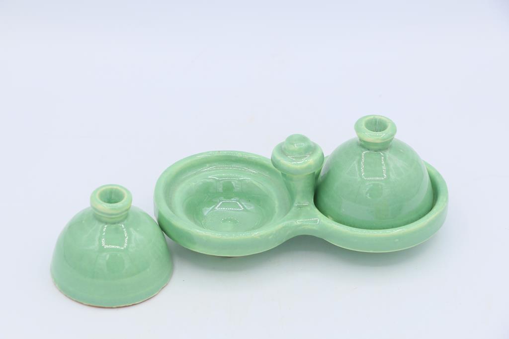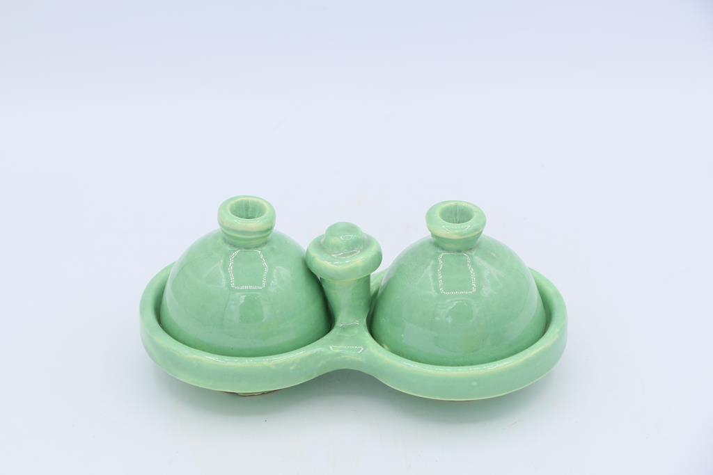 Tajine a due porta salse o sale e pepe realizzato artigianalmente in Marocco
