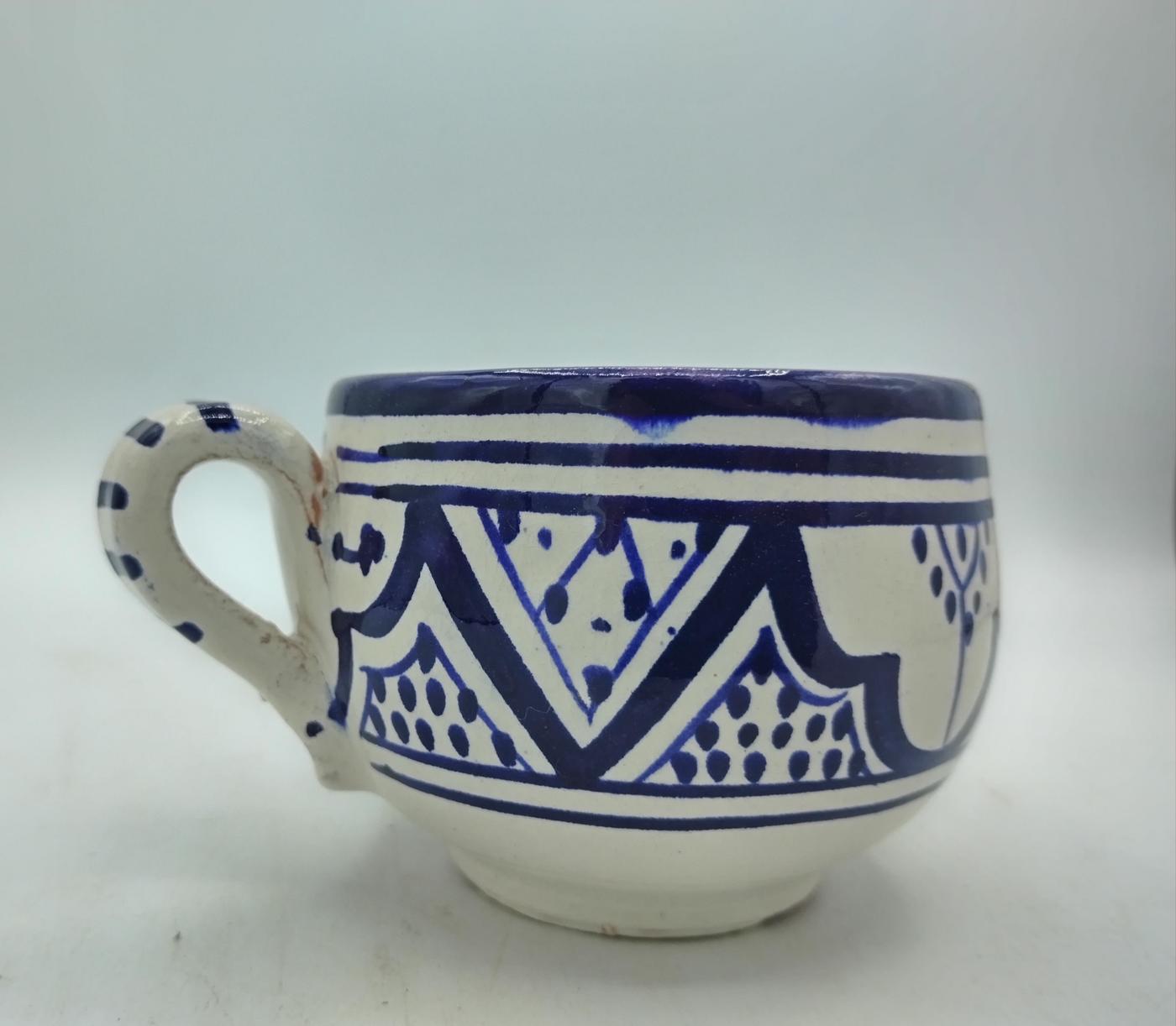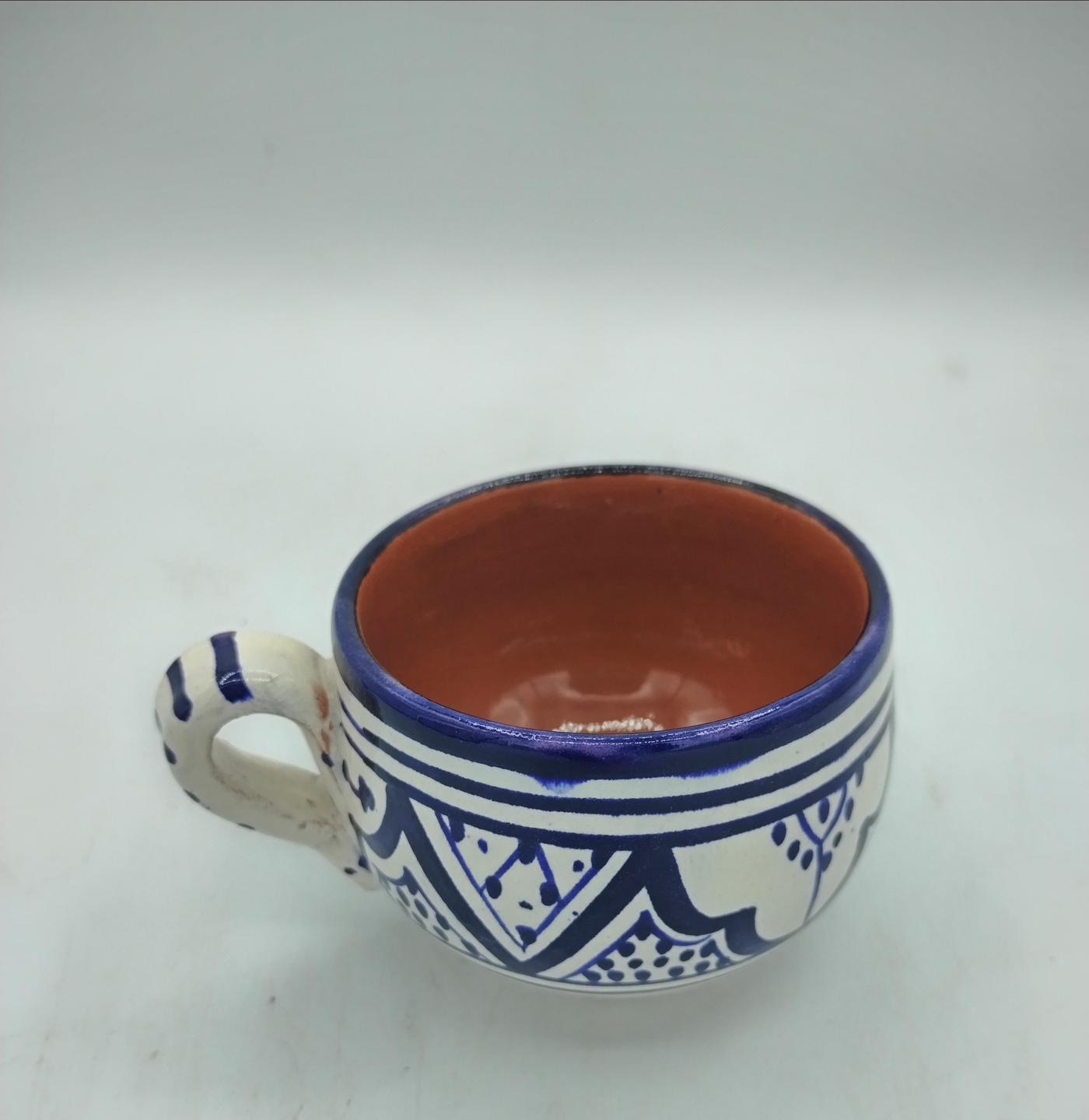 Tazza marocchina con manico in terracotta smaltata e dipinta