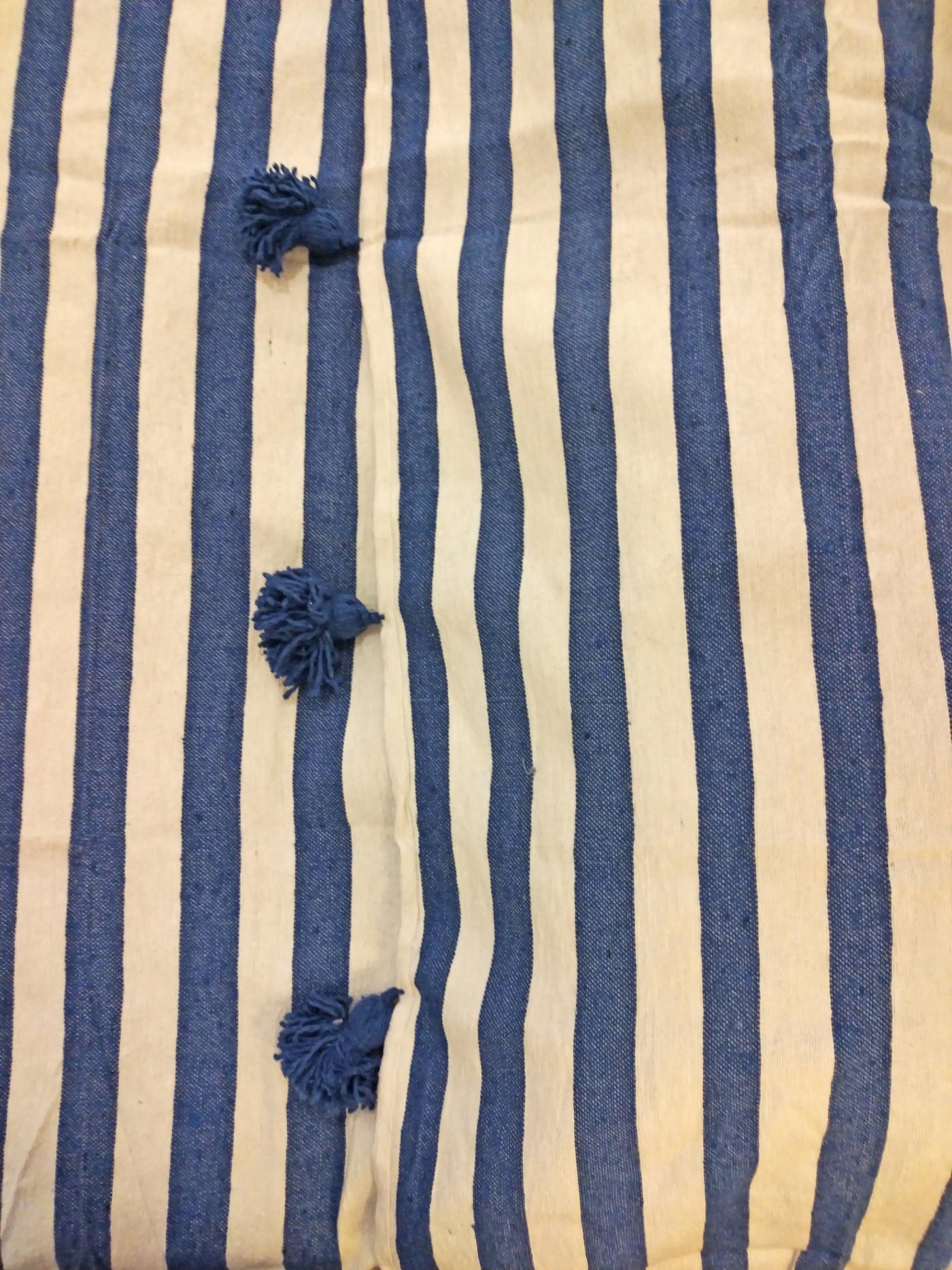 Telo marocchino con pompon in cotone con motivo a righe bianche e blu