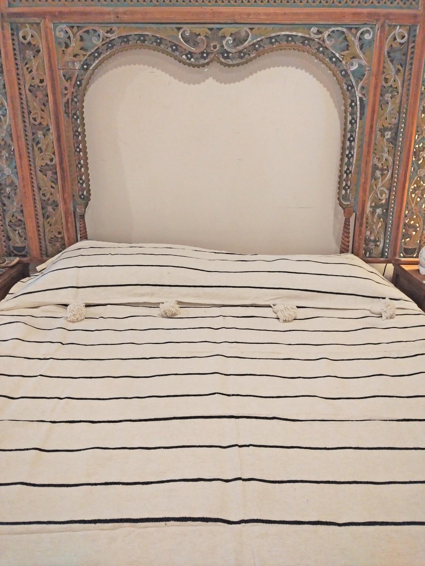 Il meraviglioso telo Jafar è stato realizzato in cotone, tessuto con telai tradizionali da abili artigiani della città di Marrakech.