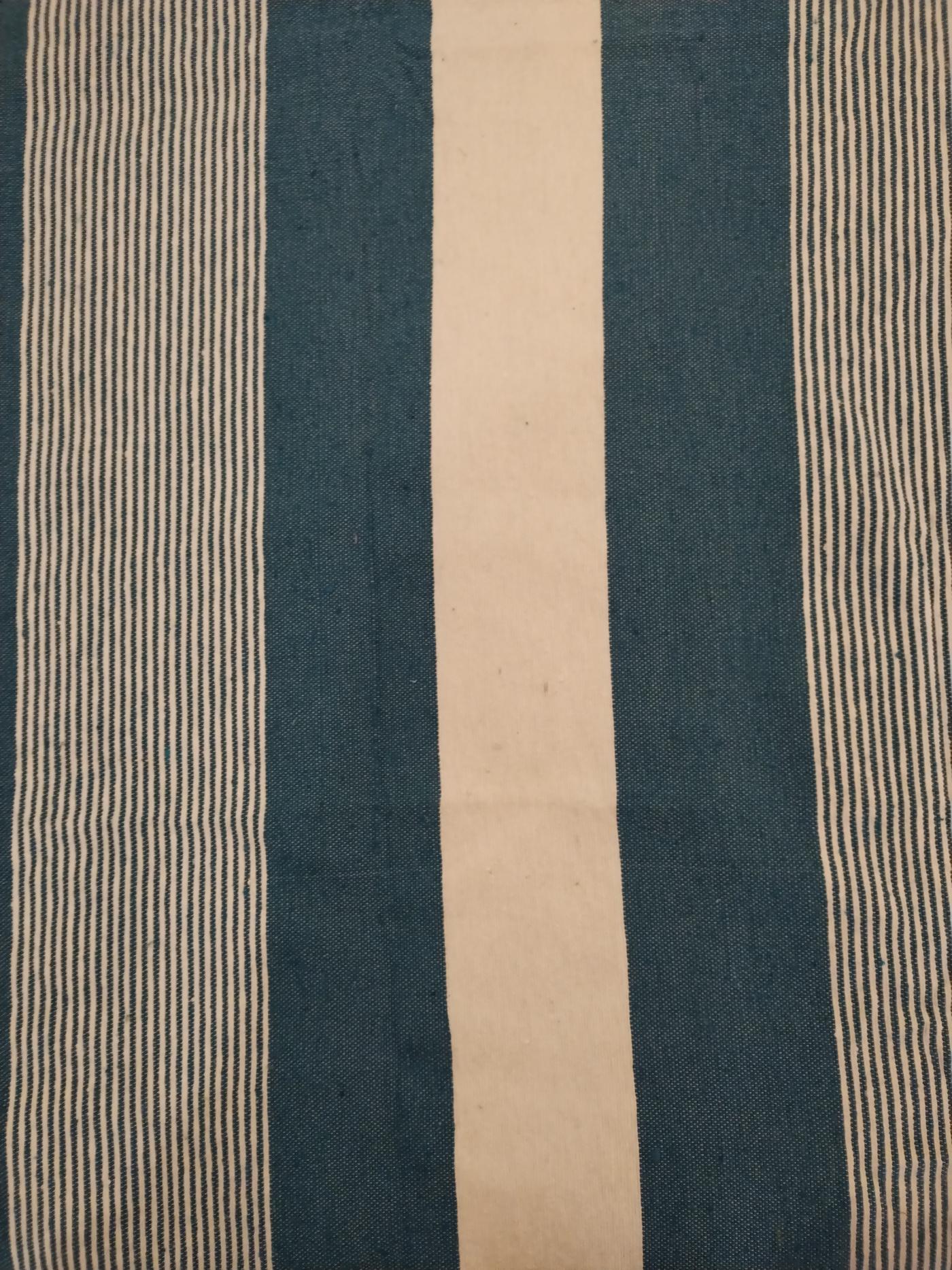 Ha un motivo con righe fini che si alternano a righe più fitte e larghe color verde petrolio e bianche, che danno un bel tocco di colore a qualsiasi ambiente.