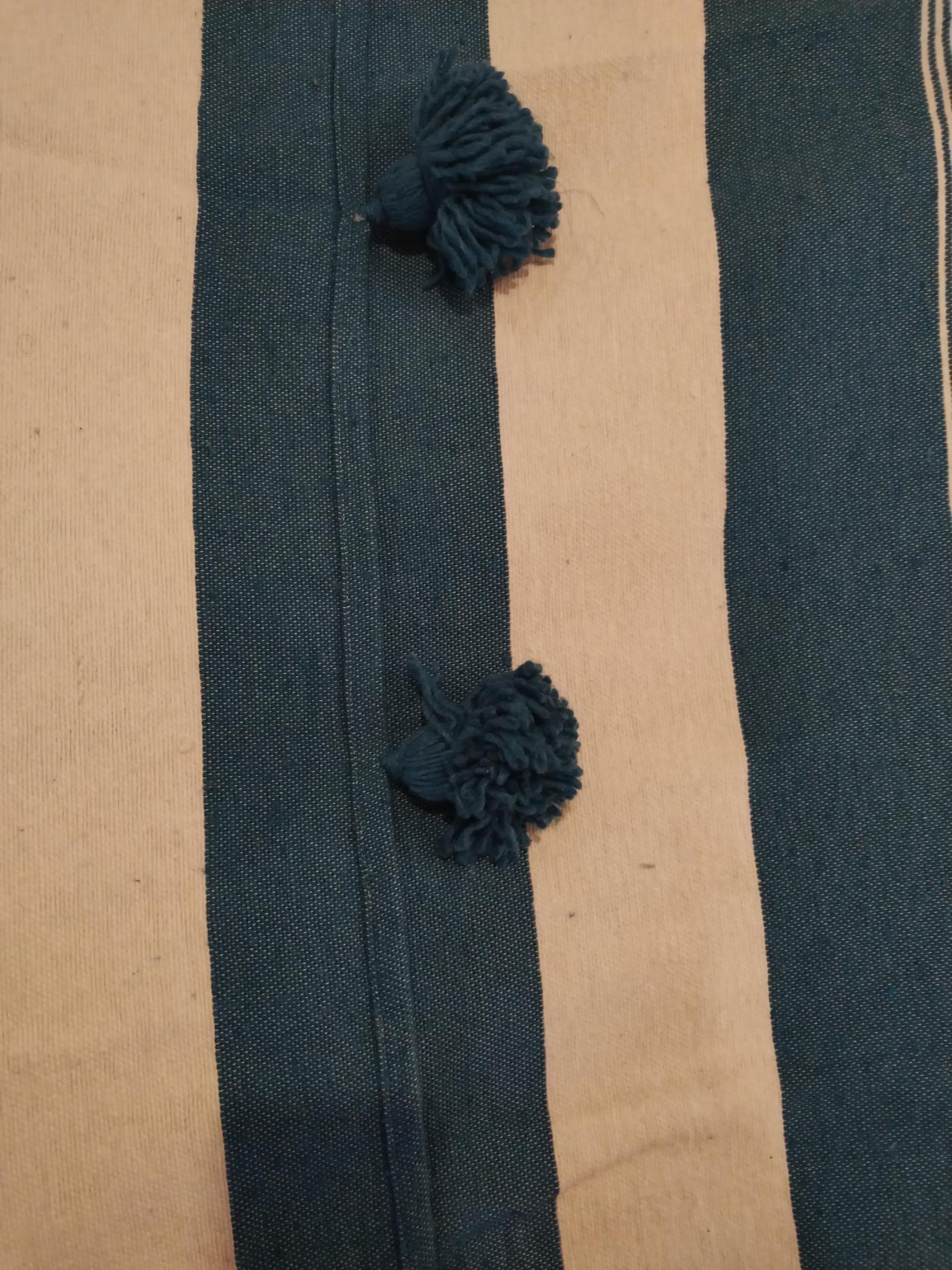 Telo marocchino con pompon in cotone, con motivo a righe, color verde petrolio e bianco