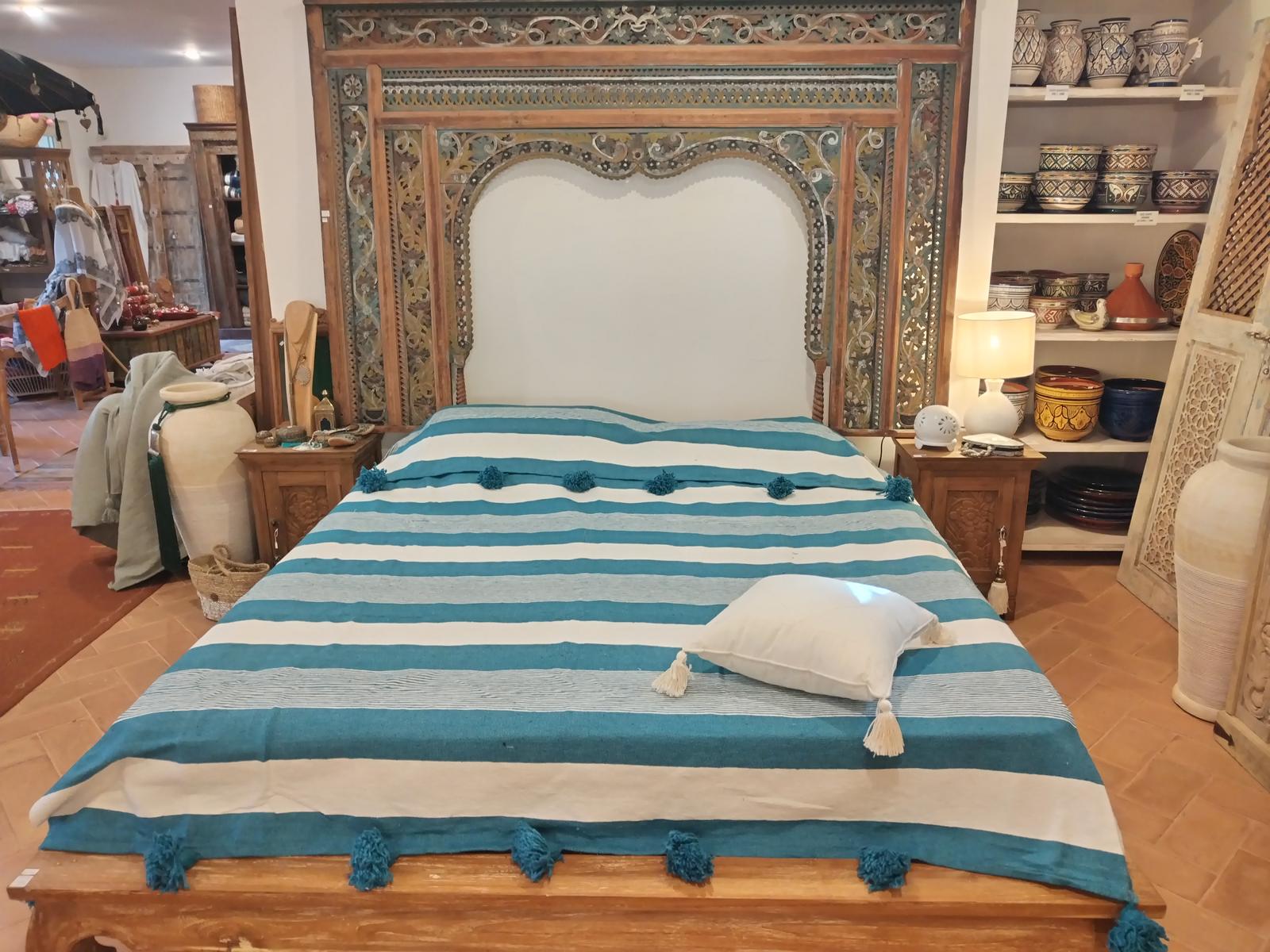 Il meraviglioso telo Jafar è stato realizzato in cotone, tessuto con telai tradizionali da abili artigiani della città di Marrakech.