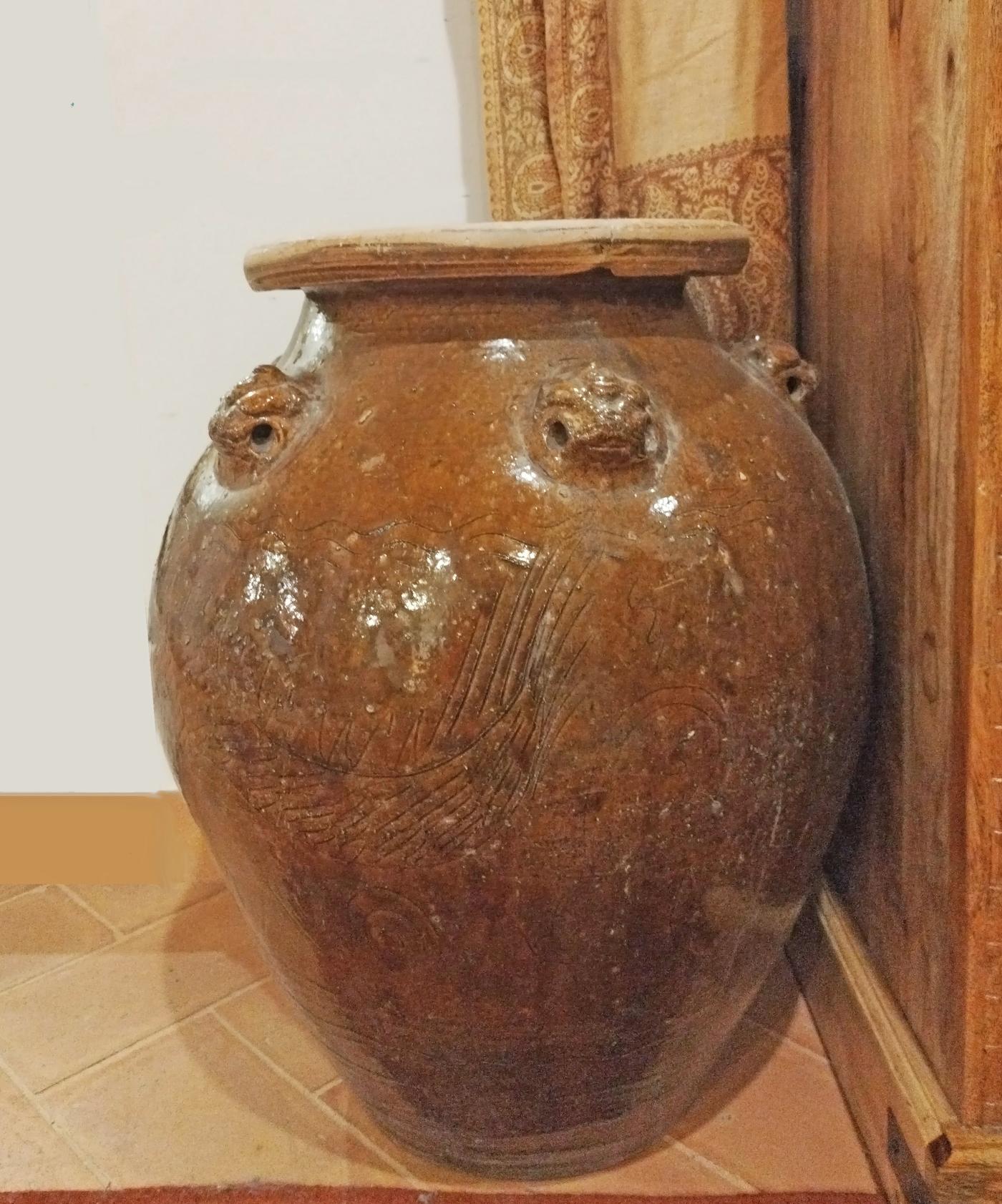 Vaso in terracotta smaltato sui toni del marrone, realizzato in India