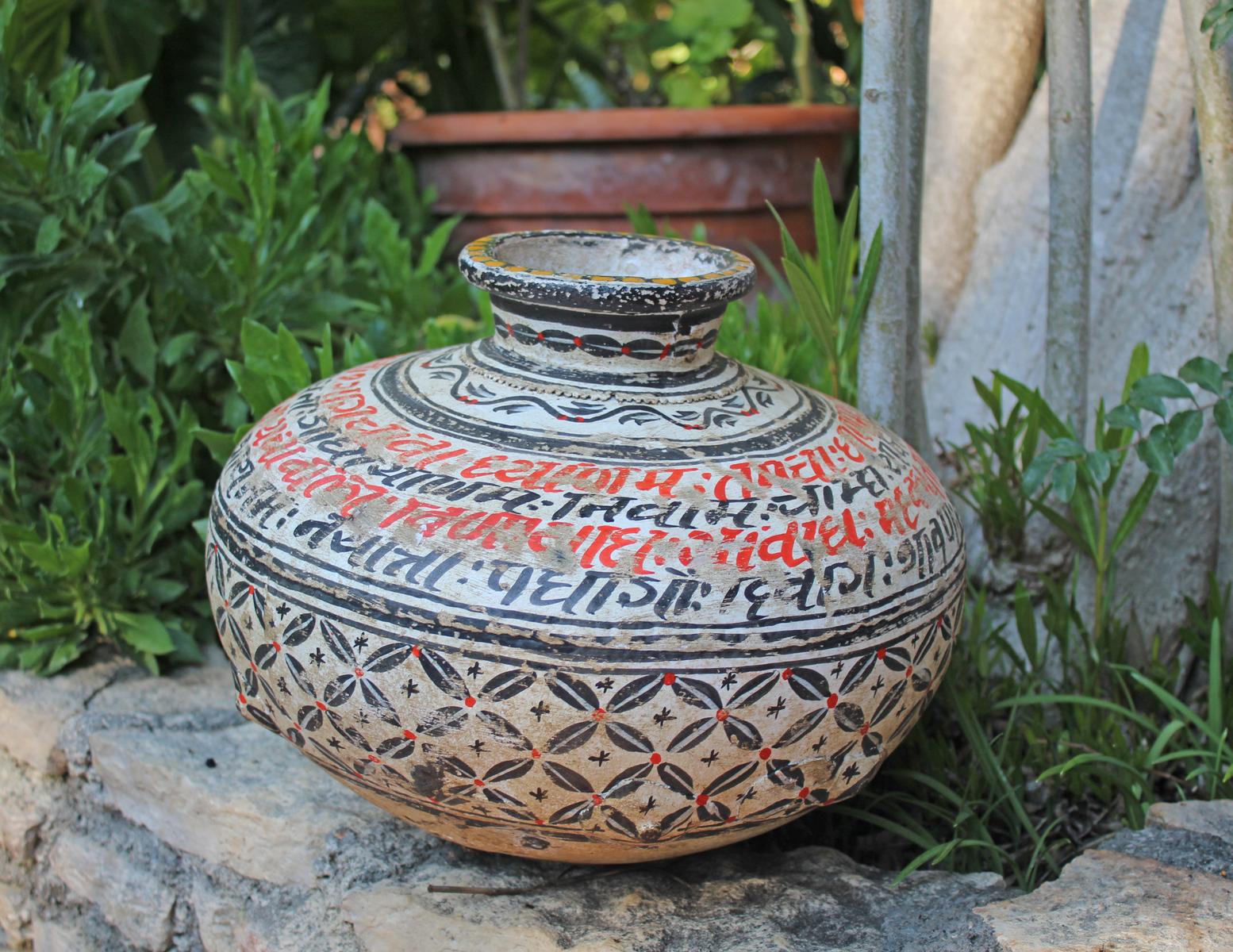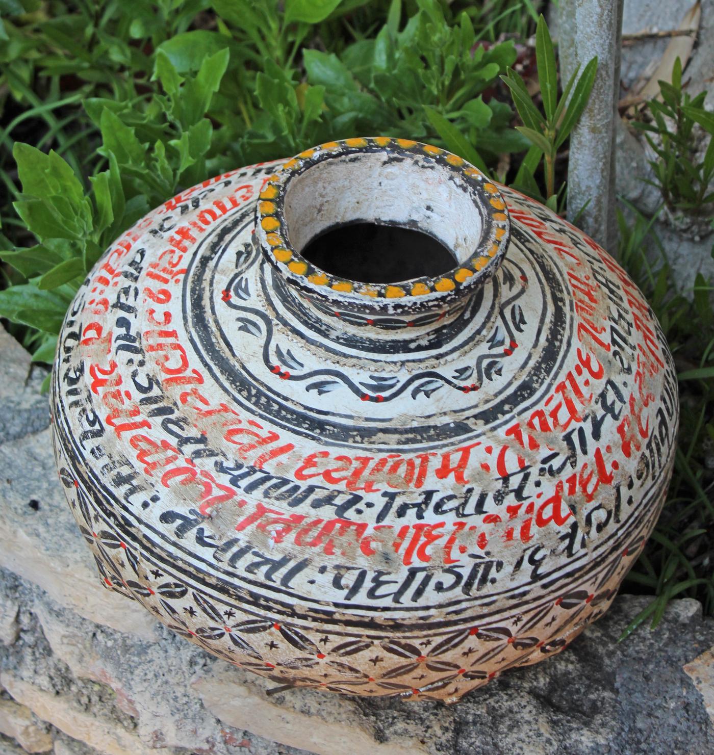 Vaso in ferro dipinto a mano, realizzato in India