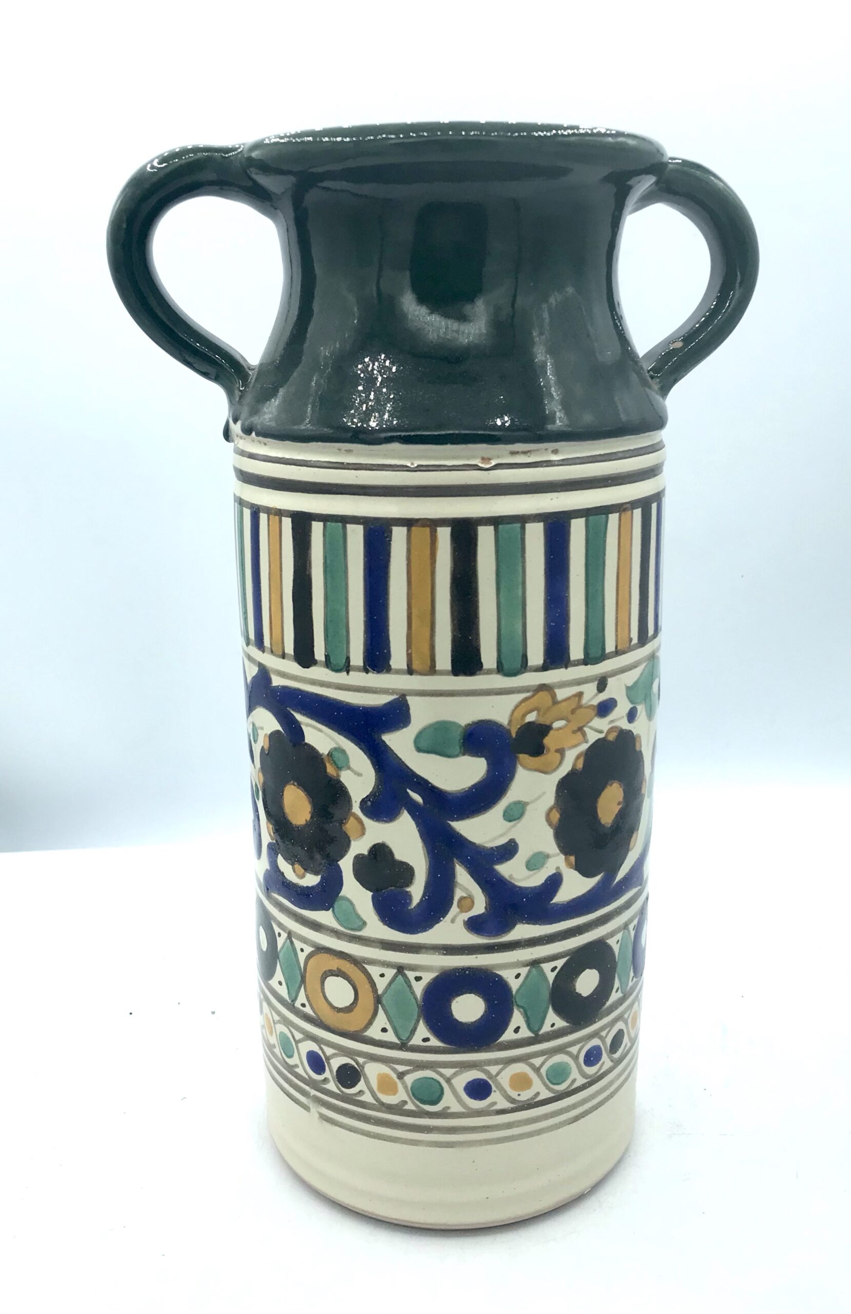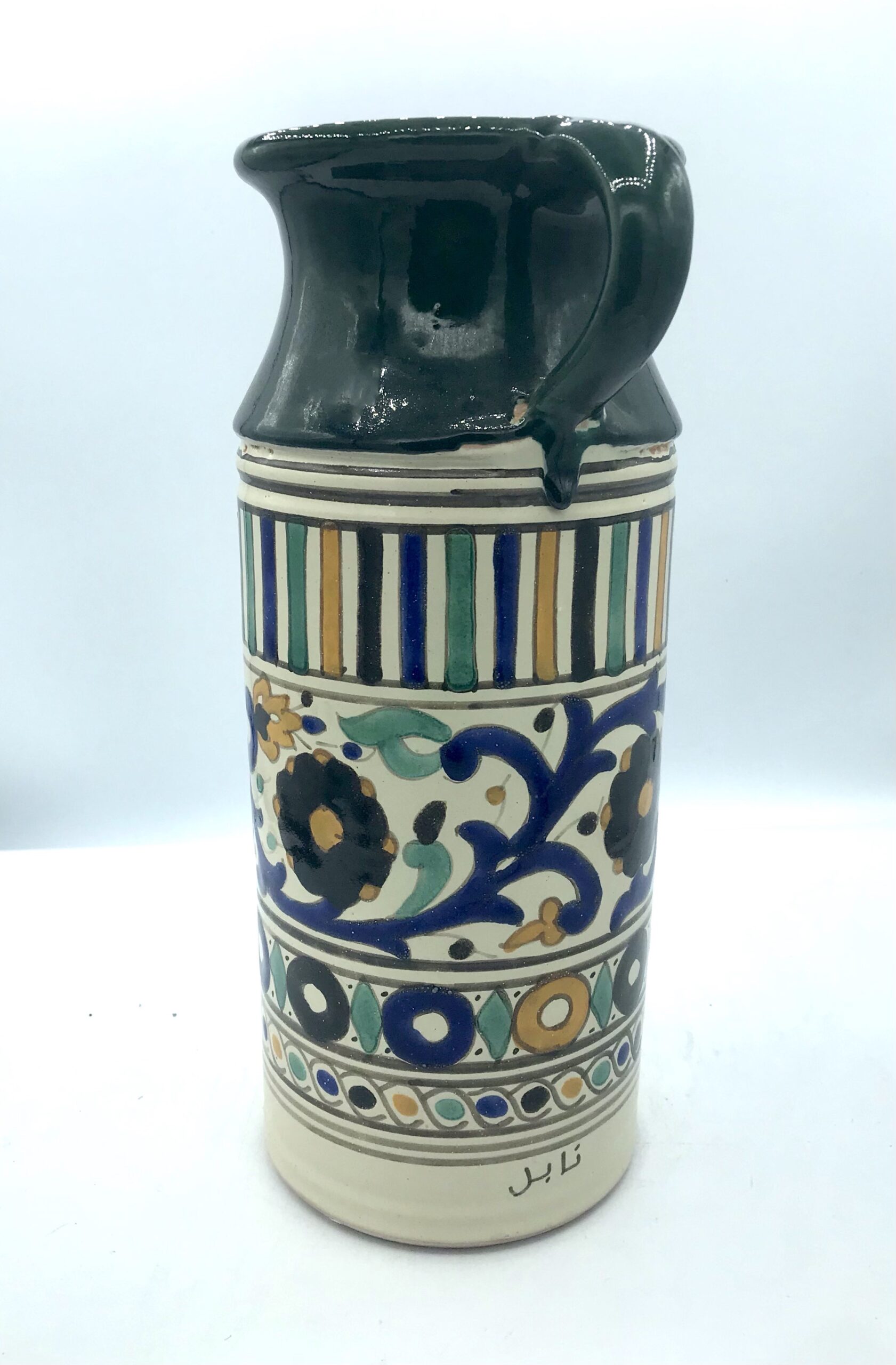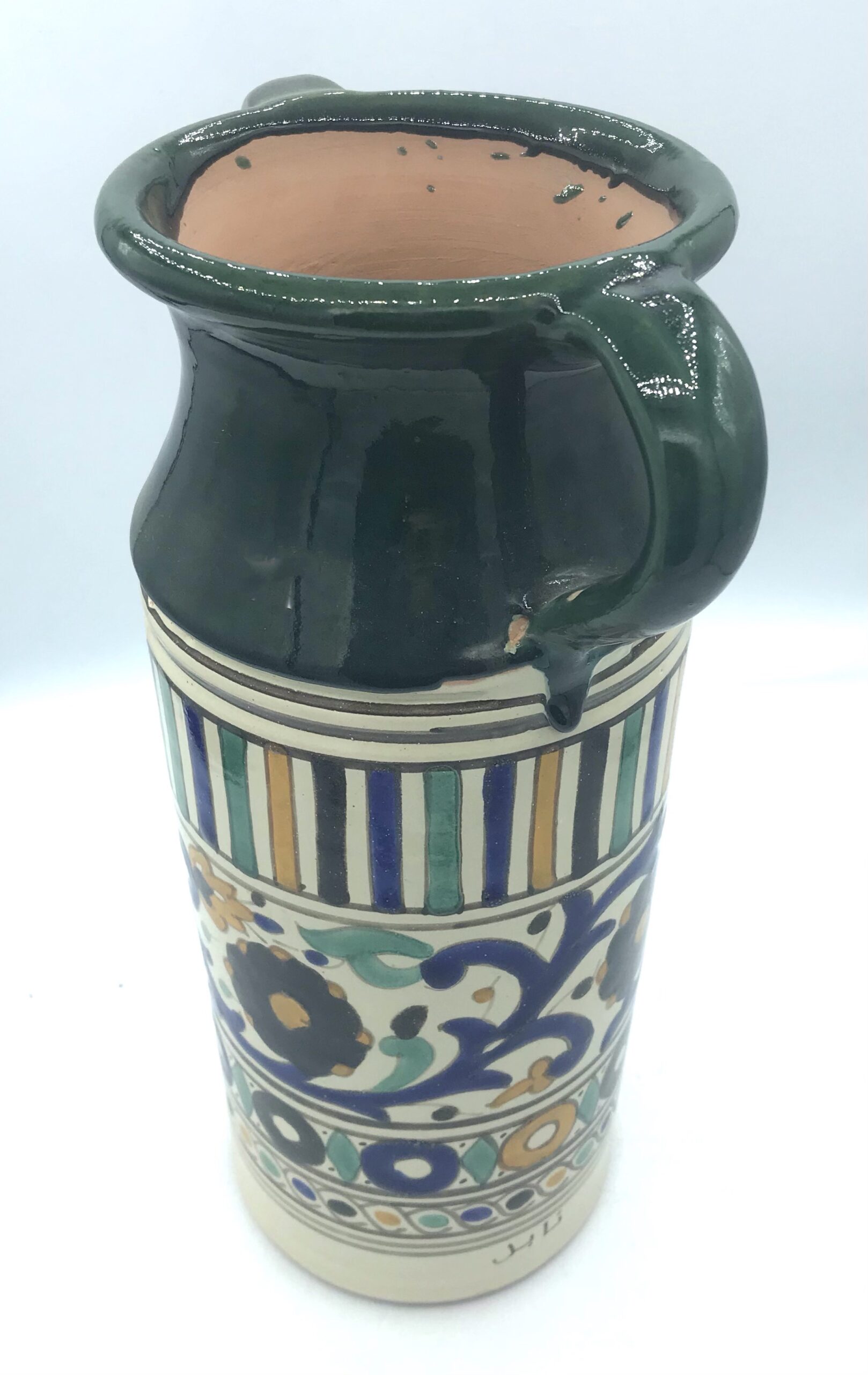Vaso tunisino in terracotta smaltata dipinti a mano con motivi floreali