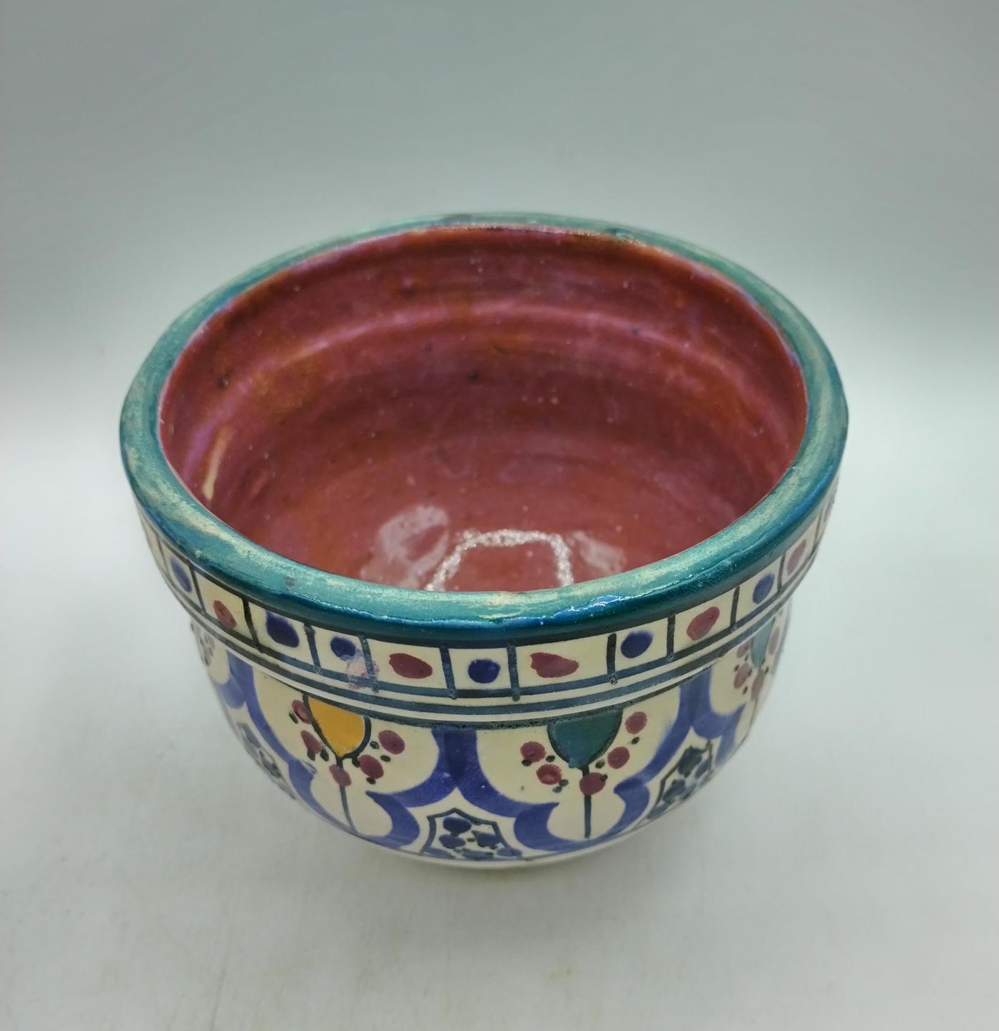 Vaso in terracotta smaltata con motivi geometrici, realizzato artigianalmente in Marocco