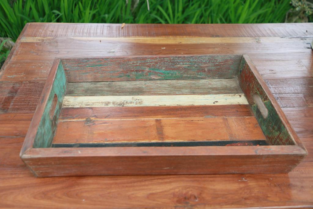Vassoi in legno di teak, color naturale decapato in vari colori