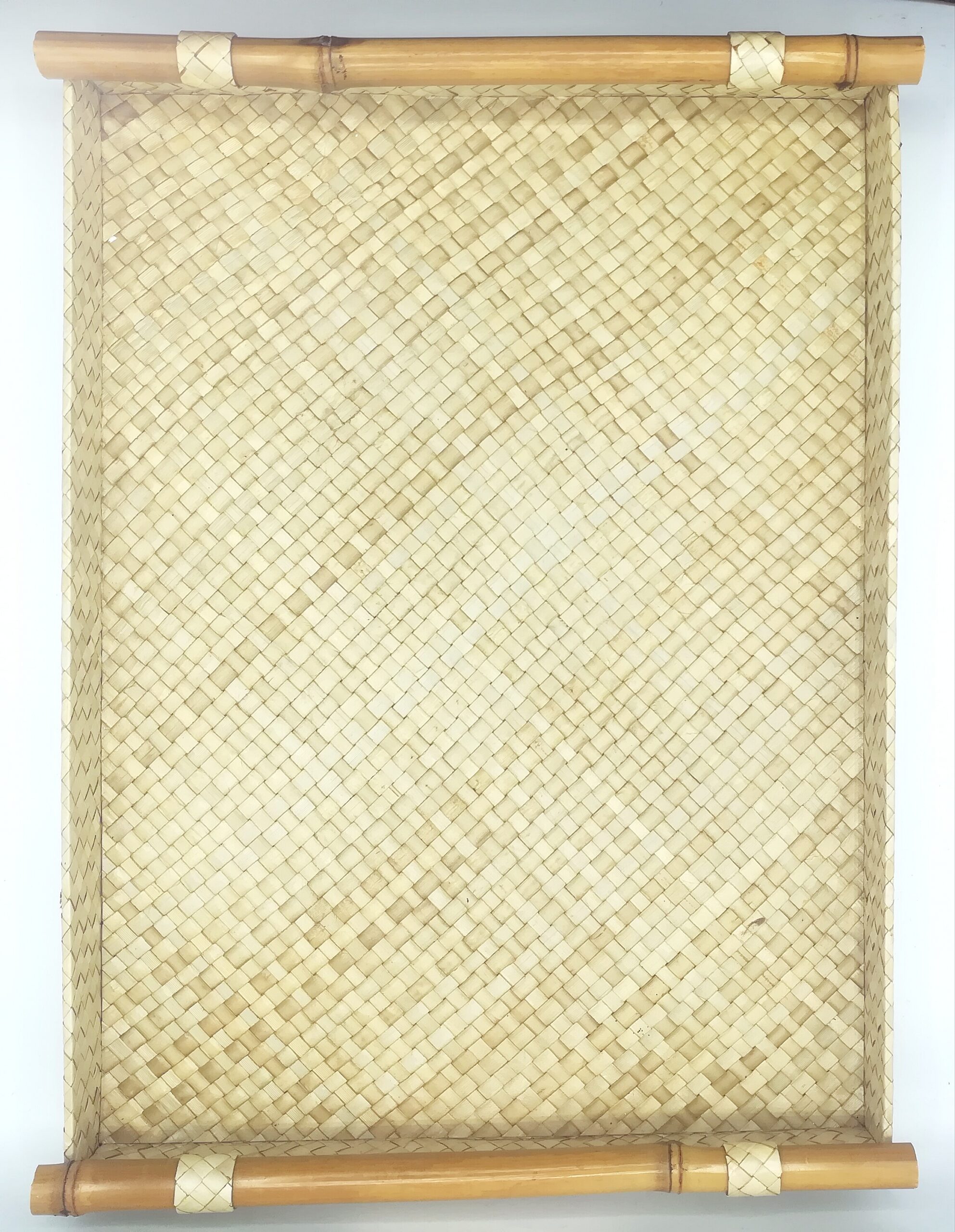 Il vassoio Rattan è realizzato in Indonesia da artigiani locali dell’ isola di Bali, ha una forma semplice e lineare; è composto da un intrecciata trama di rattan con manici in bambù, sui toni del beige.