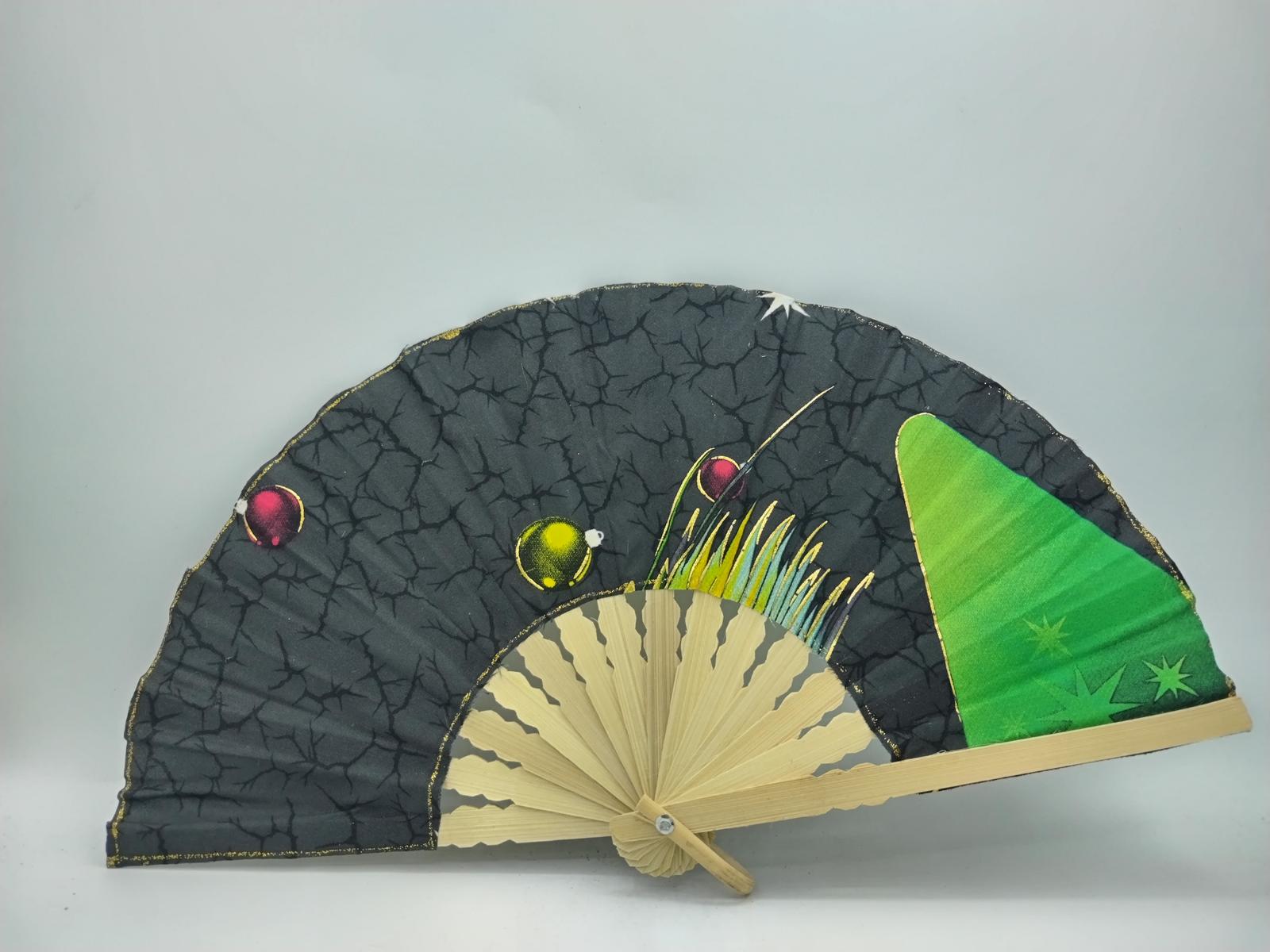 Ventaglio prodotto artigianalmente in Indonesia, realizzato con parti di tessuti Batik con disegni tipicamente orientali