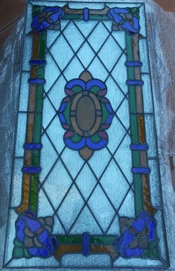 Vetrata artistica piombata, ispirata a quelle antiche, realizzata artigianalmente in Indonesia in vari colori e decori geometrici o floreali
